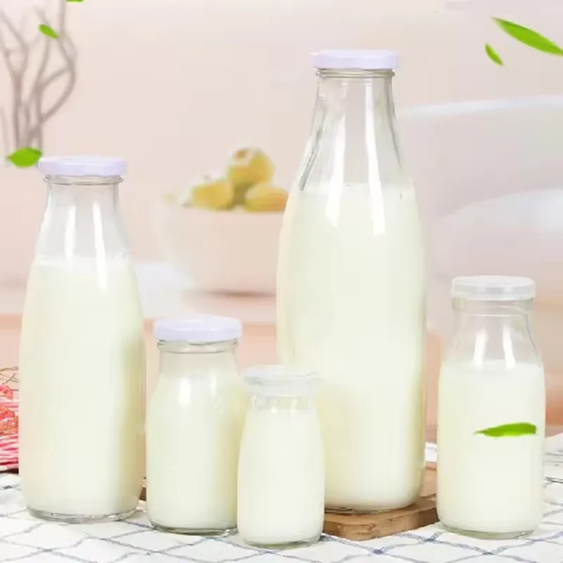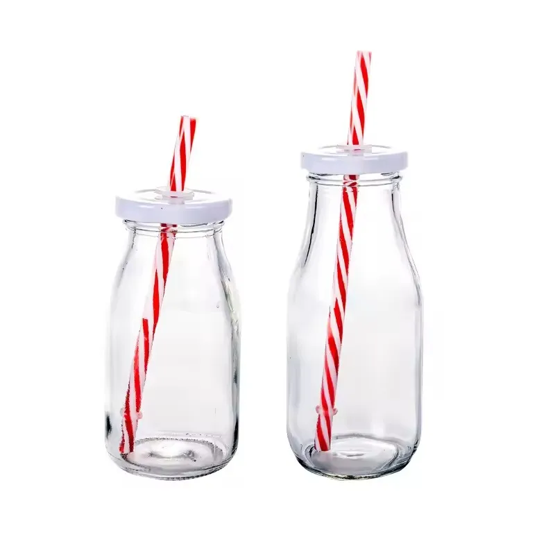 Custom 200ml 250ml 300ml 500ml 1000ml Clear Water Bottle Portable Beverage Glass Bottle With Screw Cap And Straw