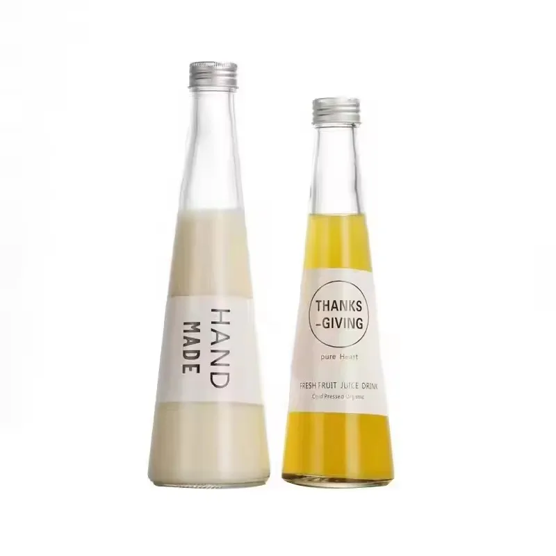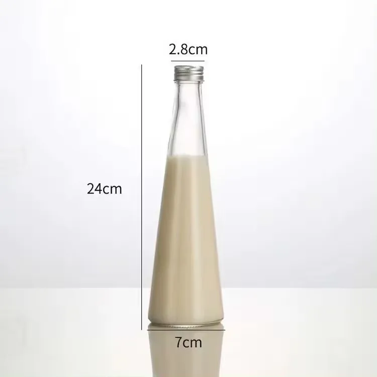 Free Sample 250ml 500ml 16oz Soda Clear Glass Wine Bottles Cone Can Shaped 750ml glass champagne bottle with screw cap