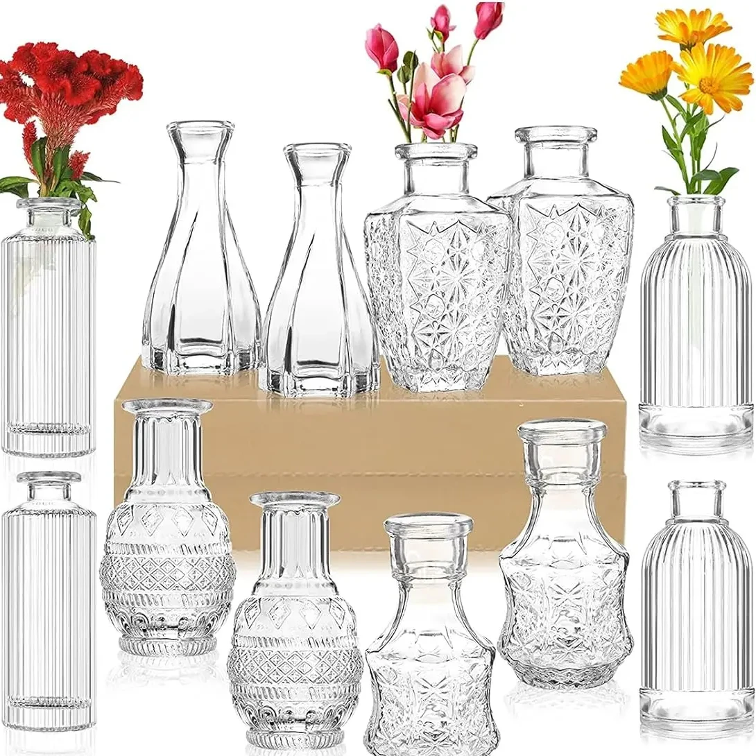 Top Modern 30pcs Set Tabletop Small Bud Vase Transparent Clear Glass Decorative Vase Flowers Vase Wedding Gift