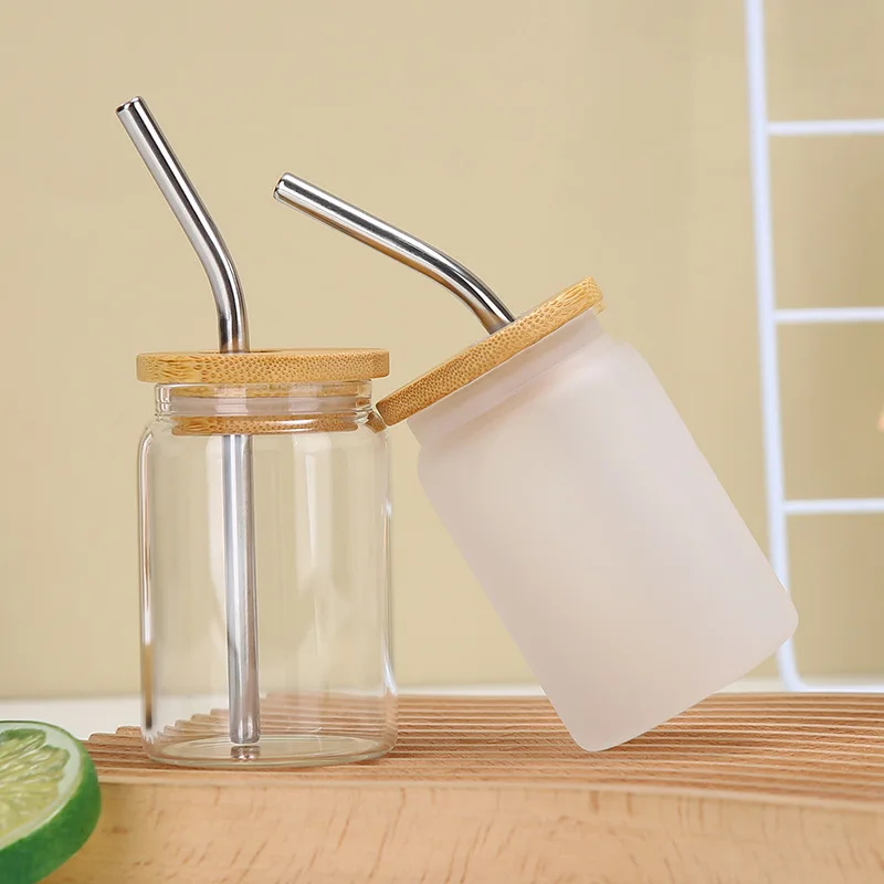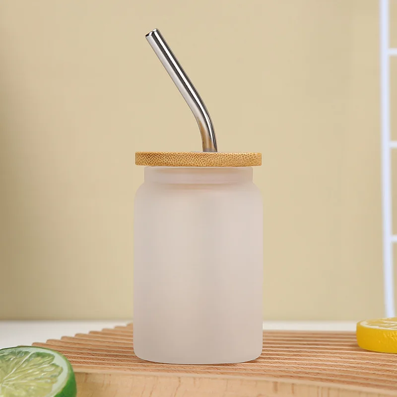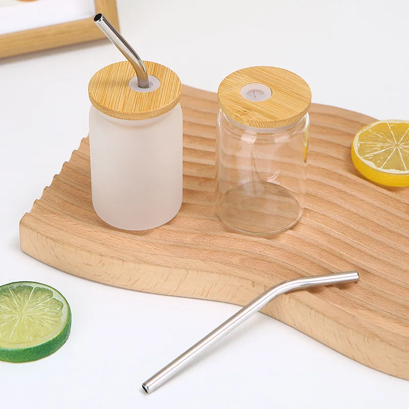 new USA warehouse cute 3.5oz mini glass can clear frosted blank sublimation mini shot beer glass can cups with bamboo lids