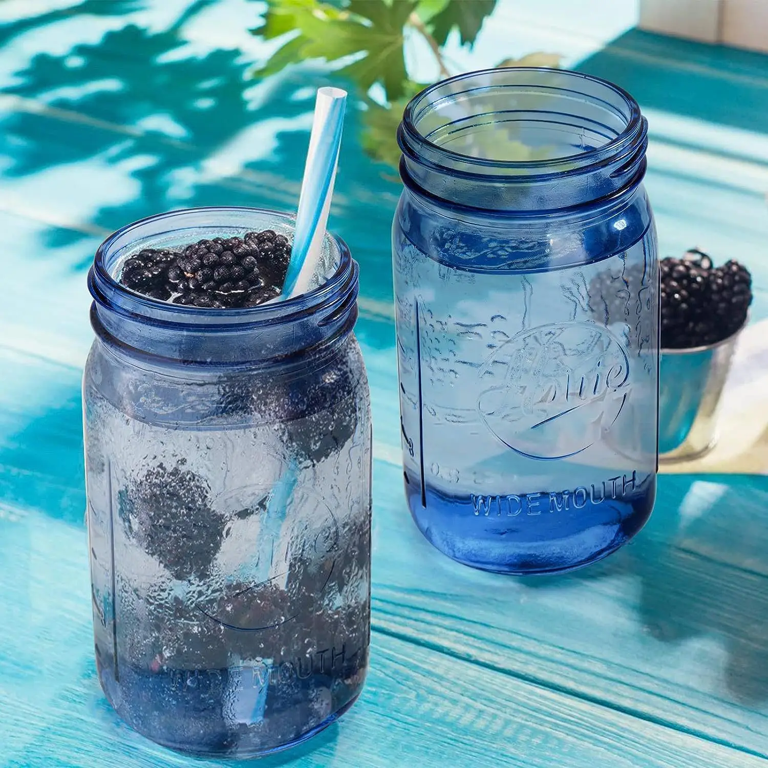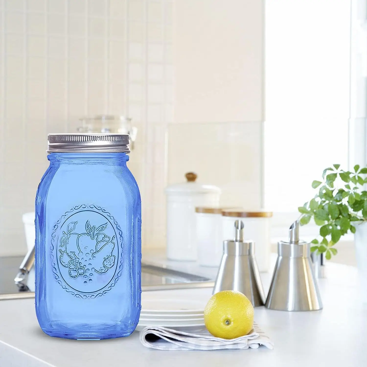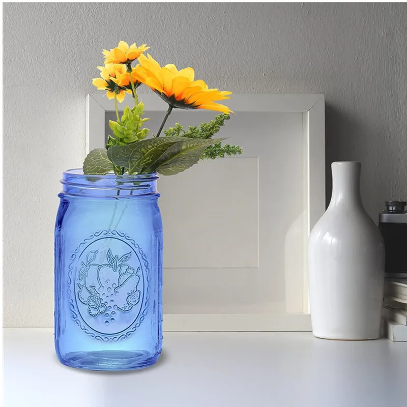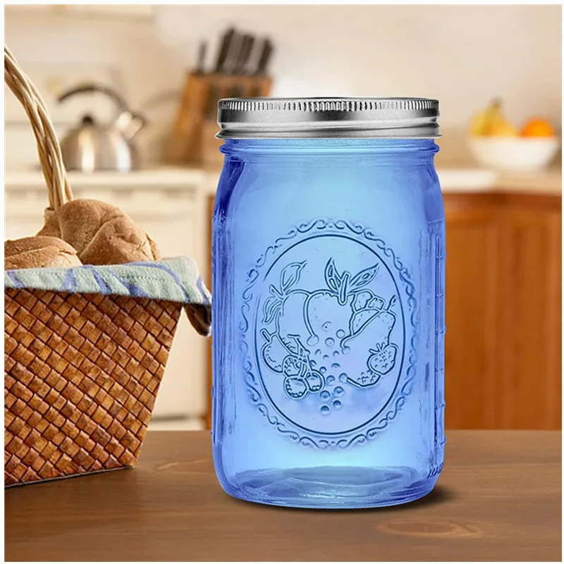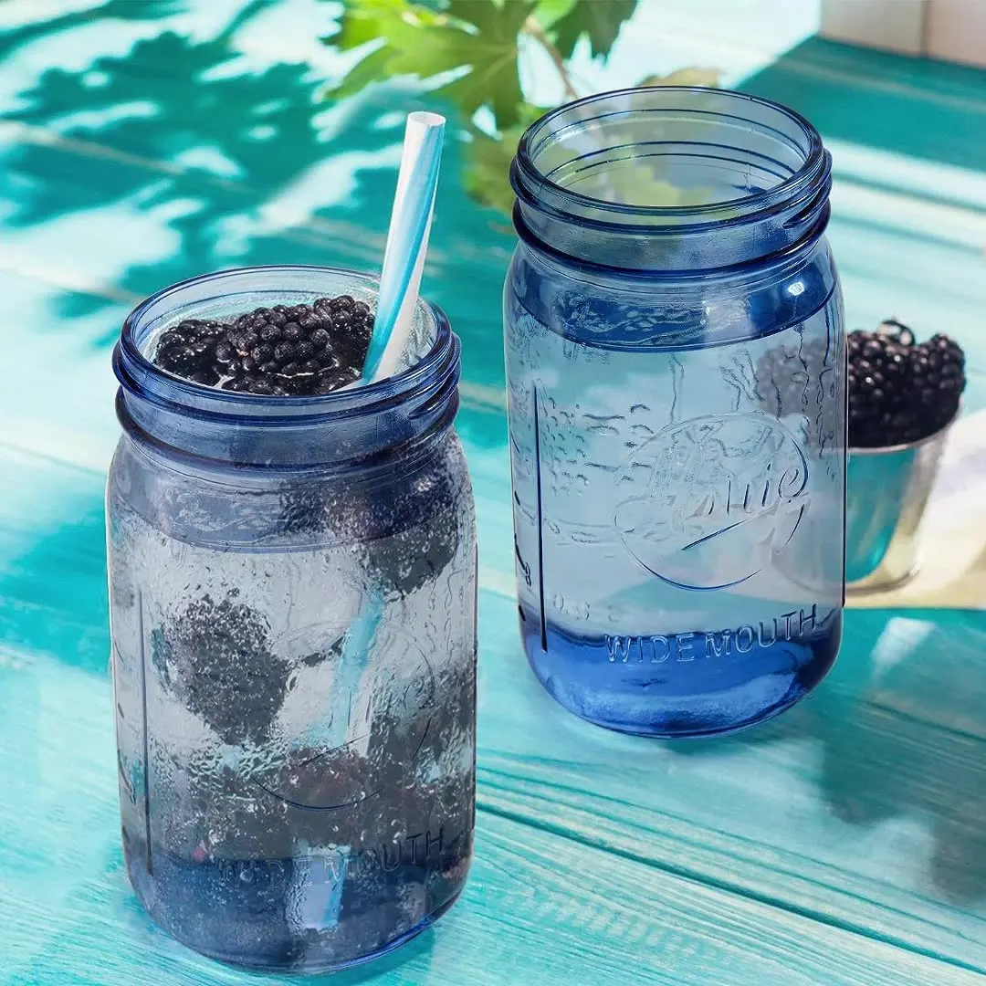 32 oz Wide Mouth Alcohol Drinking Blue Glass Mason Jar Glass Bottles Canning Jar with Airtight Lids