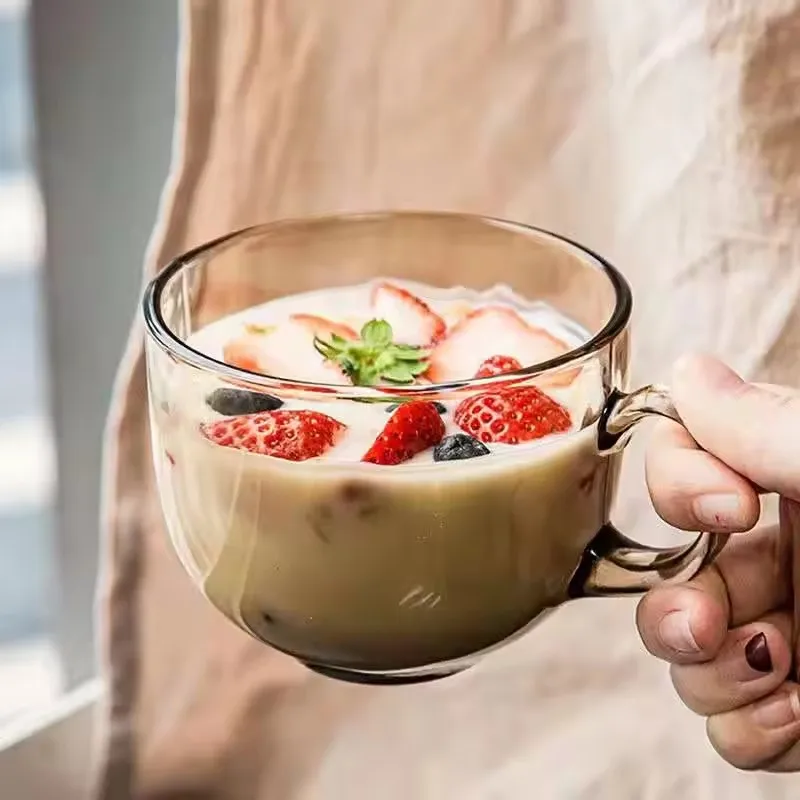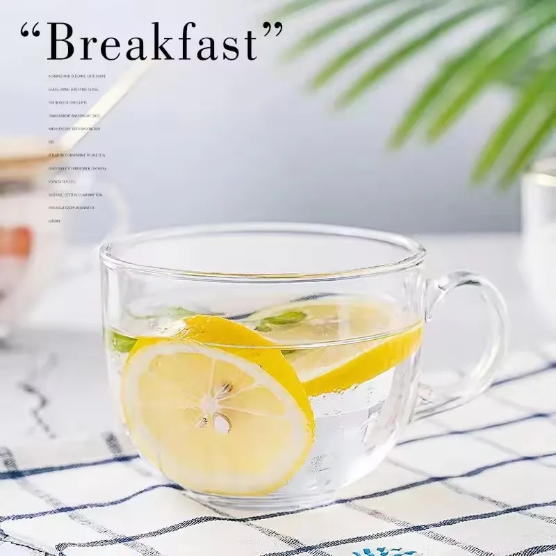 Wholesale Glass Water Bottle Drink Clear Drinkware Portable Camp Amber Glass Breakfast Cup Custom Logo Big Belly Glass Water Cup