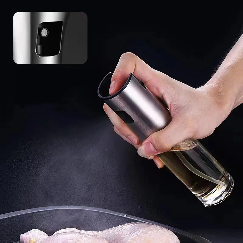Custom Clear Glass Oil Sprayer Bottle For bbq Salad Baking Roasting 100ml Stainless Steel Glass Olive Oil Sprayer For Cooking