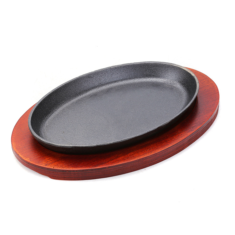 oval iron dish commercial western cuisine steak plate barbecue iron tray restaurant steak frying pan fried meat plate household