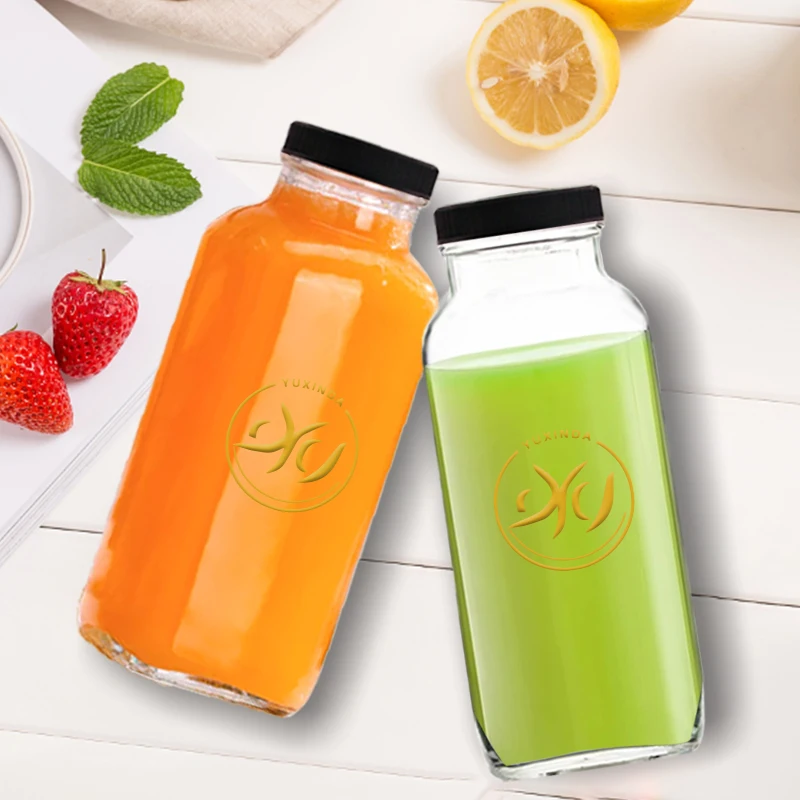Wholesale 500ml French Square Glass Bottles 16oz Glass Juice Bottles Cold Brew Beverage Empty Glass Milk Bottle With Lid