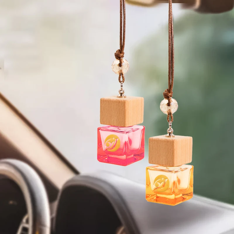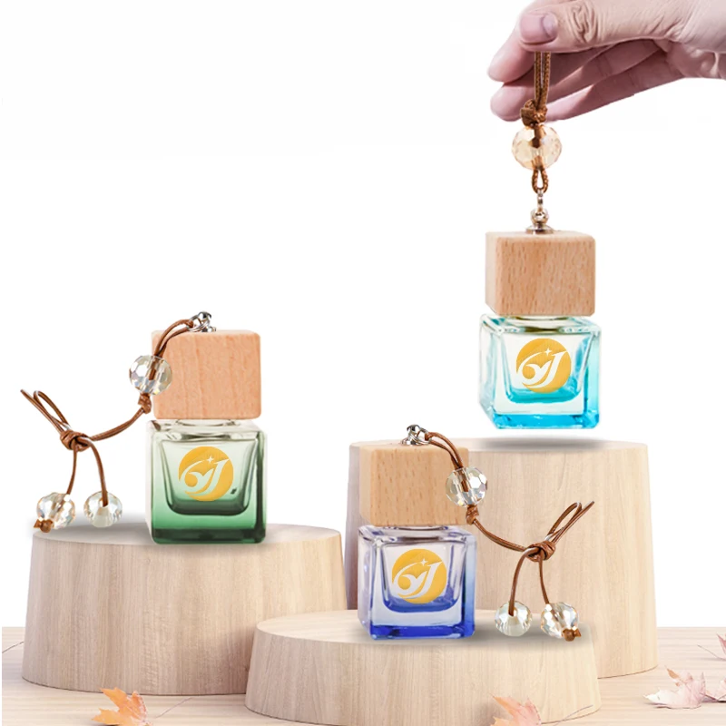 New Car Aroma Diffuser 8ml 10ml Car Diffuser Perfume Bottles With Scented Liquid Glass Car Hanging Perfume Bottle With Wood Lids