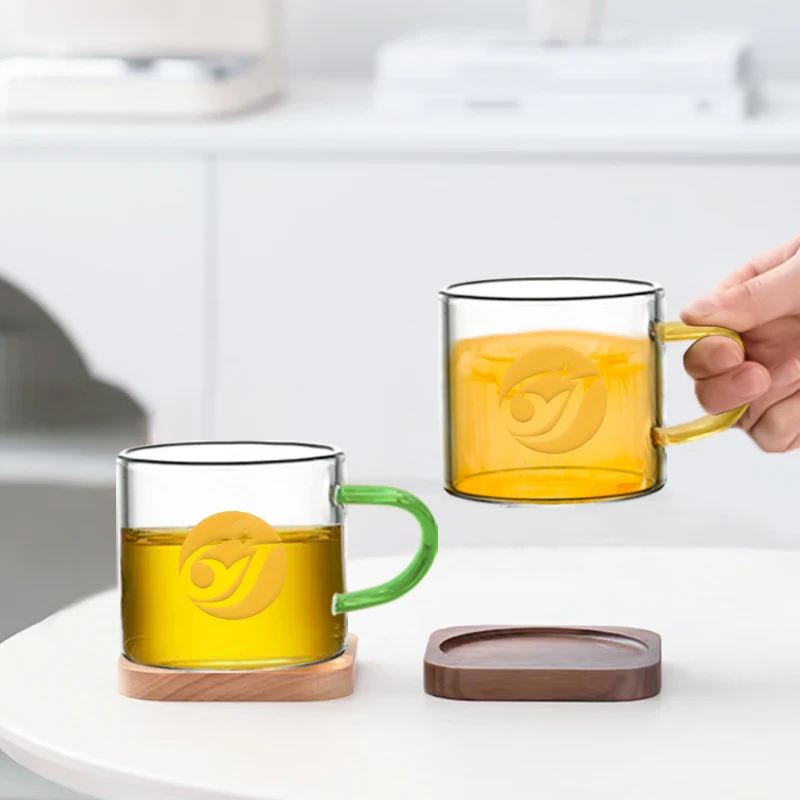 Custom Logo Drinkware Clear Round Shape Glass Drinking Cup Beer Juice Milk Can Glass Cup With Handle
