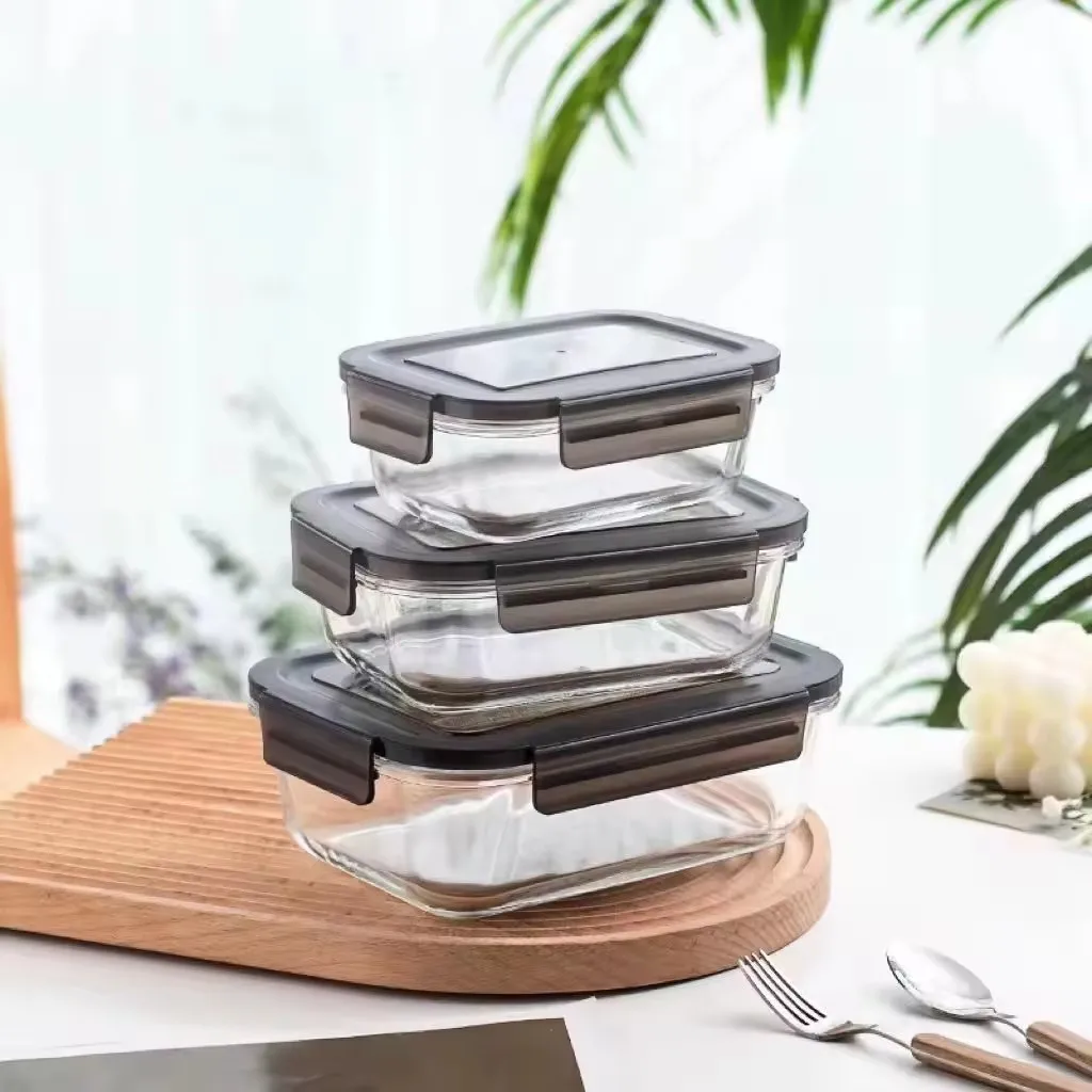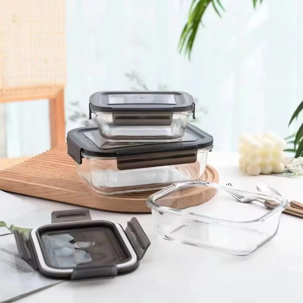 Meal Prep Glass Containers Lid Lock Borosilicate Glass Food Storage Container Set With Airtight Lid Bento Glass Lunch Box