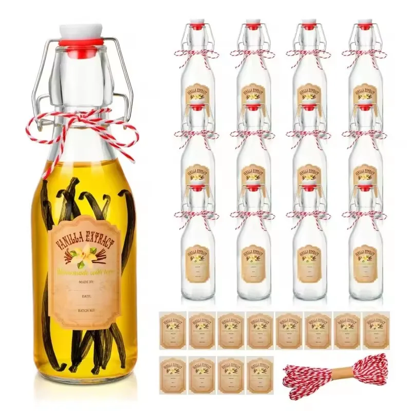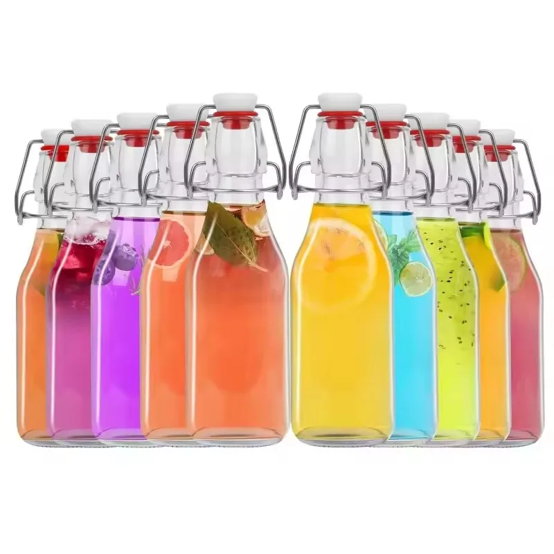 Wholesale Clear Flip Top Glass Bottles For Fruit Juice Beer Soda Glass Beverage Bottle With Airtight Rubber Cap