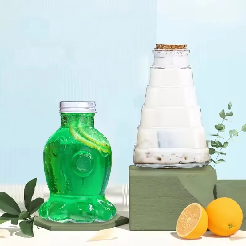Wholesale Cartoon Pattern Tumbler Cups Clear Coffee Soda Juice Shaped Sublimation Water Bottle Handmade Glass Tumblers With Lid