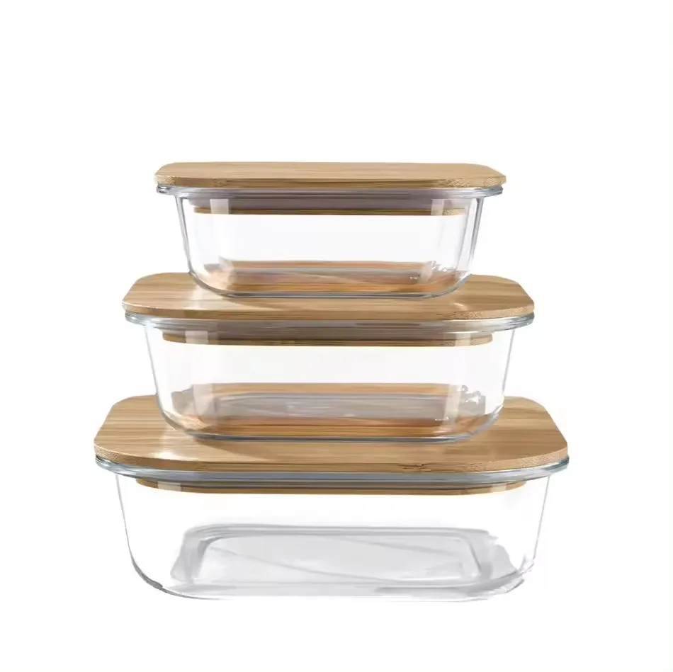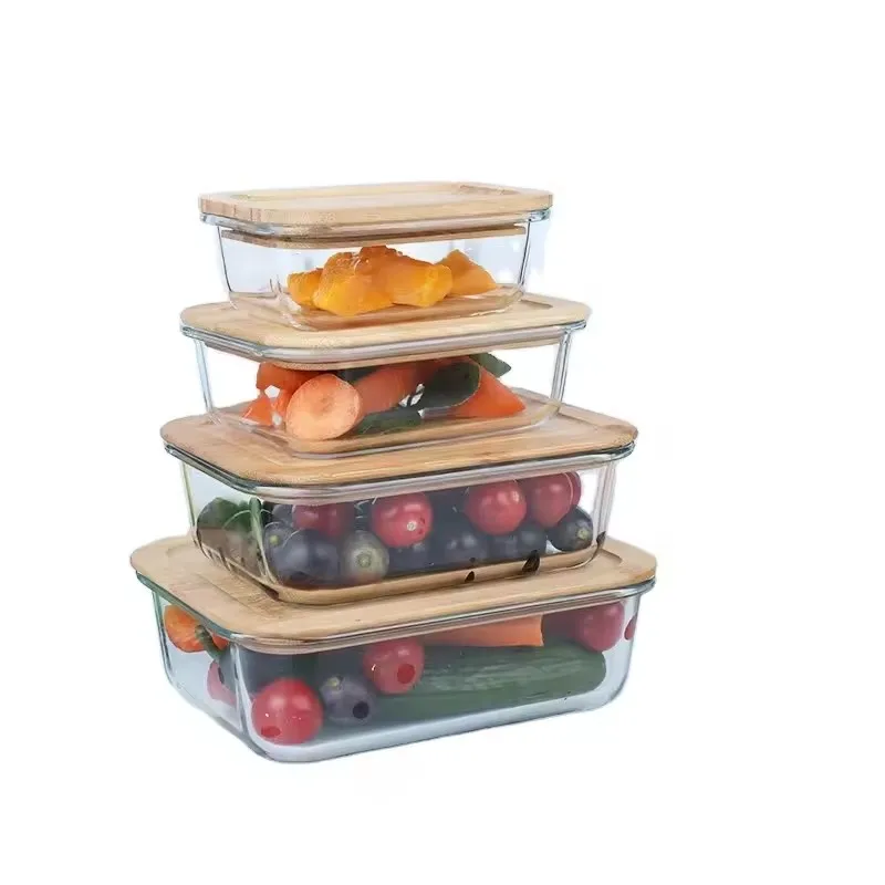 Stackable Kitchen Microwavable Glass Food Container Airtight High Borosilicate Lunch Box Glass Storage Containers With Lids