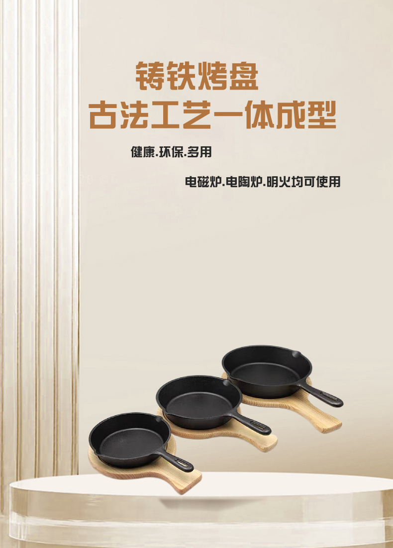thick cast iron flat frying pan non-stick steak egg frying pan western barbecue commercial cast iron frying pan with handle
