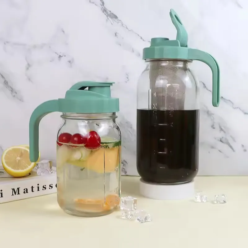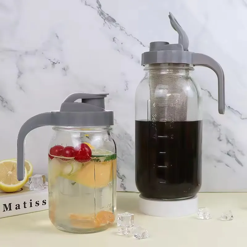Wholesale Glass Tea Water Bottle Clear Glass Juice Water Jug Set With Cups Large Capacity Glass Water Bottle With Tea Infuser