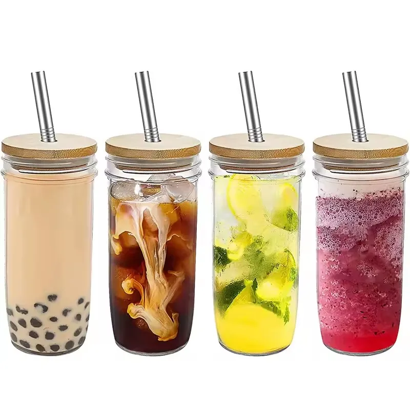 Wholesale Glass Drinking Tumbler With Handle Sublimation Water Bottle Glass Mason Jar Glass Coffee Mug with Lid And Straw