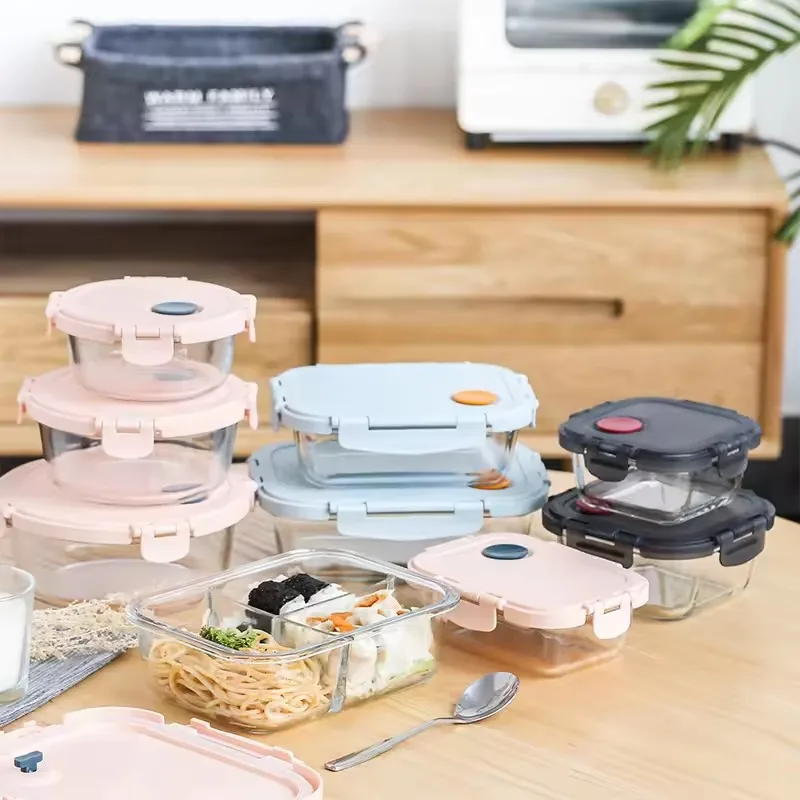 Stackable Wholesale Kitchen Airtight Glass Lunch Box Big Glass Containers Meal Prep For Food Storage Container with Locking Lid