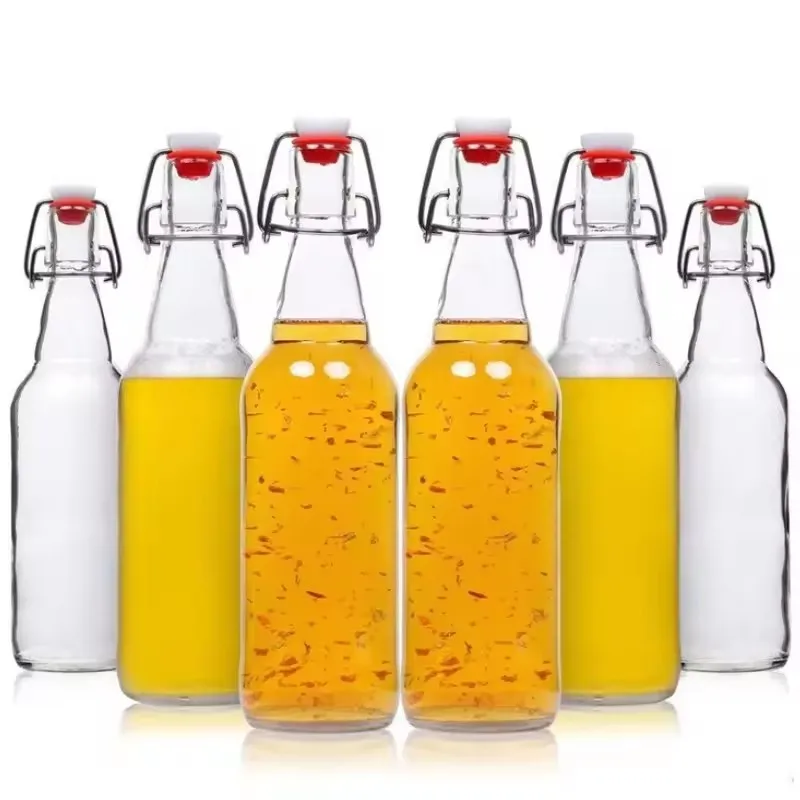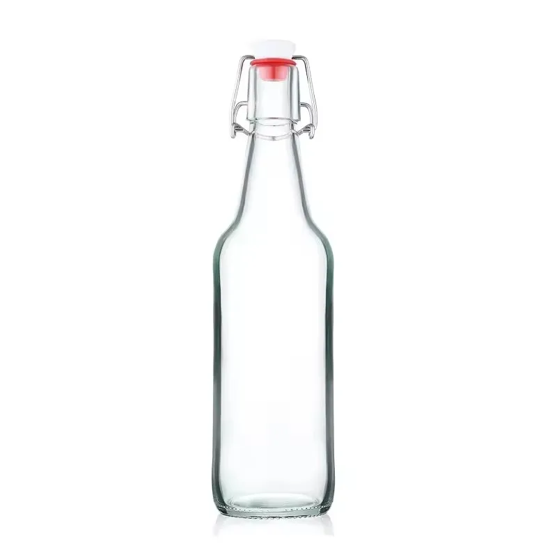 Custom Clear 500ml 750ml beverage glass bottle juice soda glass bottle flip top cap for glass bottle with airtight stopper
