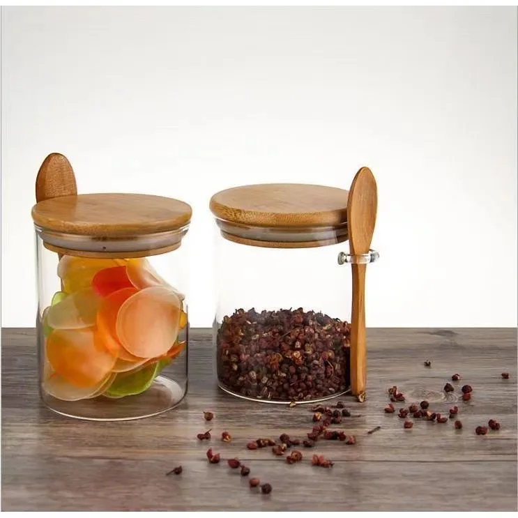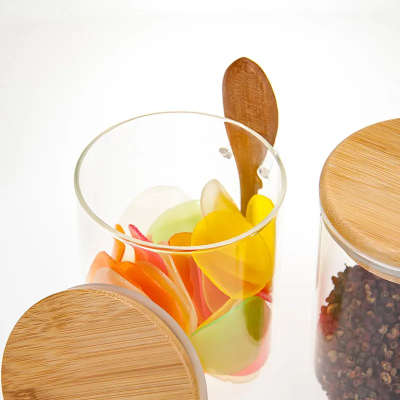 Wholesale Multiple Capacities Kitchen Glass Food Storage Container Clear Round Airtight Glass Jar With Bamboo Lid And Spoon