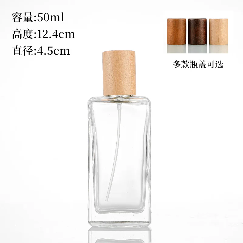 Hot 50ML Wooden Lid Square Glass Bottle Perfume Distributed Bottle
