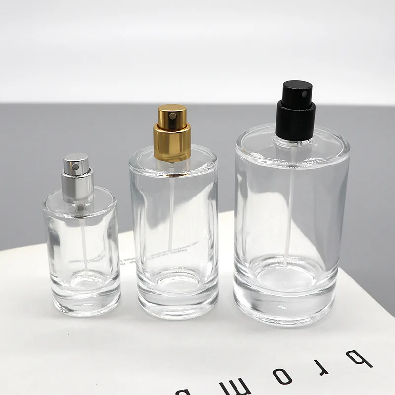 Recyclable Classic Round Clear Empty 30ml 50ml 100ml Atomizer Bottle Glass Bottles For Perfume With Pump Sprayer Lids