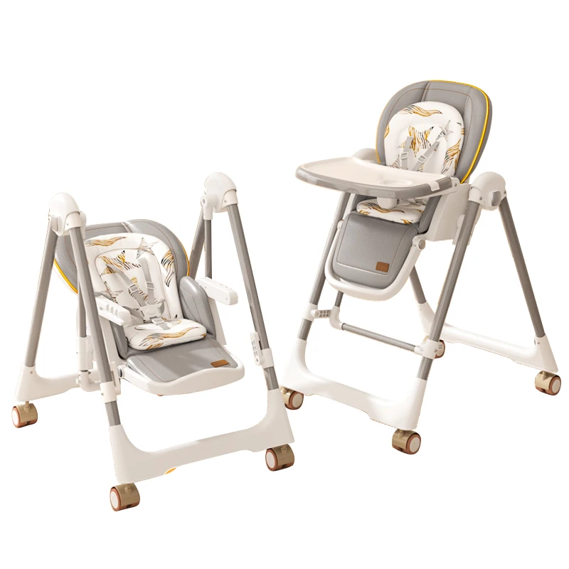 Double-layer tray, 3-speed adjustable tray, 8-speed adjustable height, 4-speed adjustable backrest, 3-speed adjustable footrest, universal wheels, one-key storage, 5-point safety belt, PU leather cover, cotton cushion, variable rocking chair