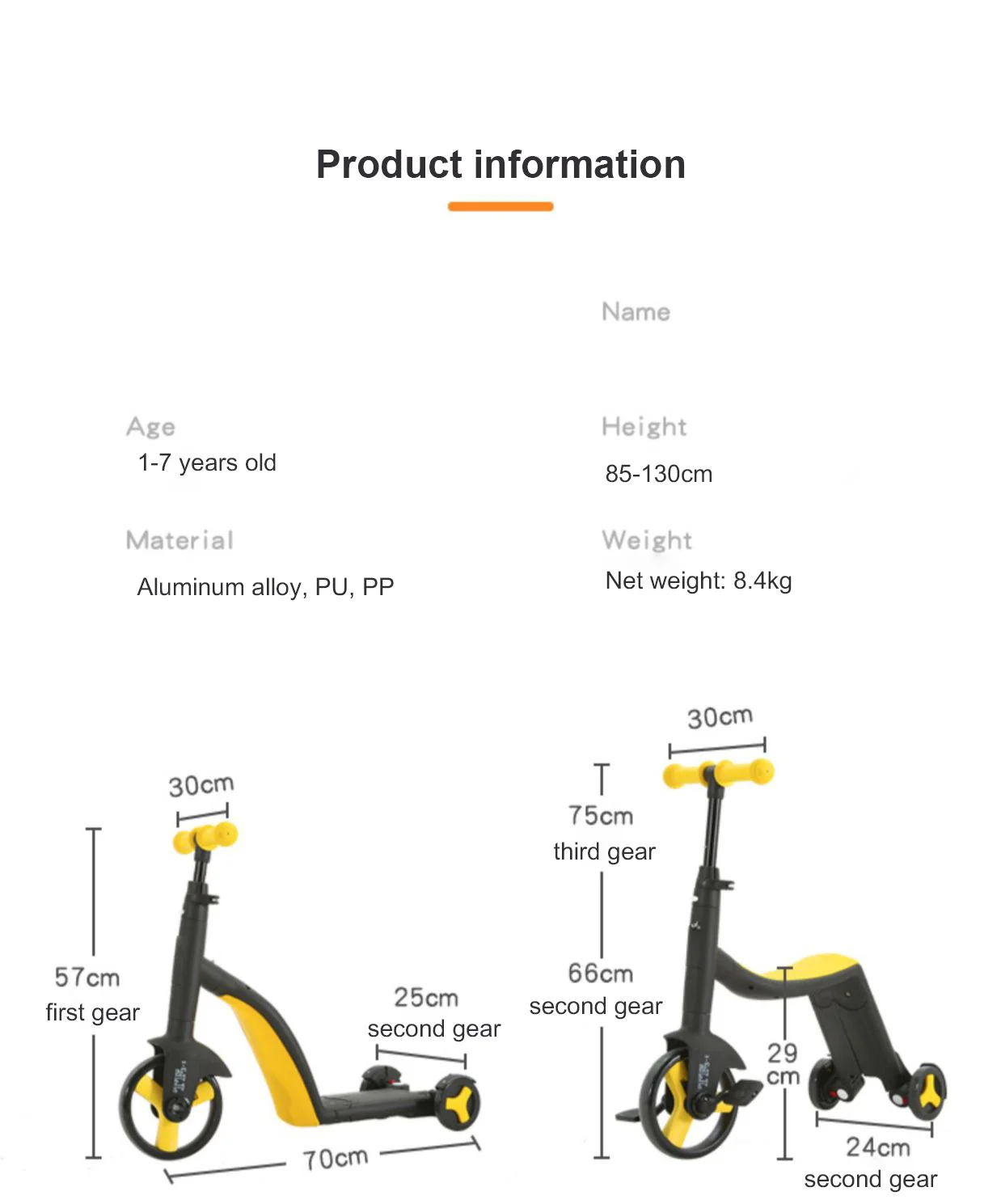Item name: | Loopingfun Outdoor Children Mini 7 Inch Pu Wheels 5 In 1 Unisex Push Kids Aluminium Ride On Car Balance Bike |