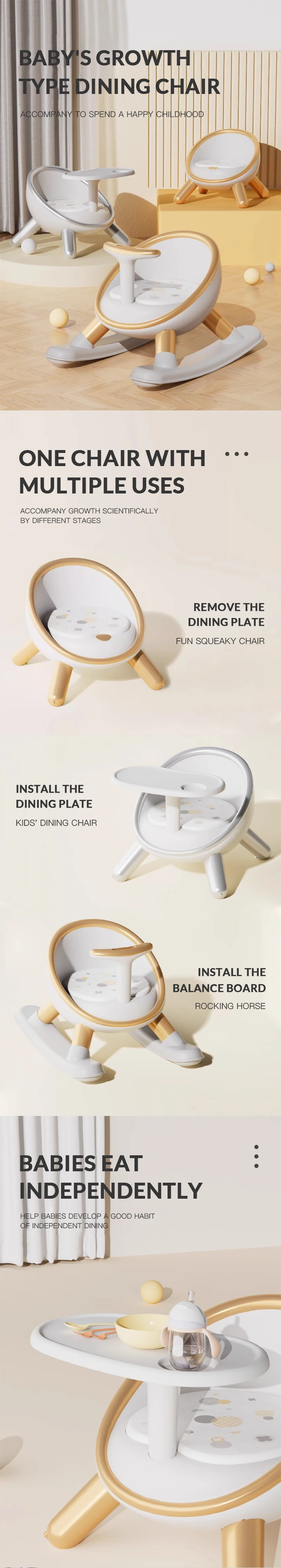 Customization Plastic New Kids Child Booster Seat Portable Baby Rocking Chair Feeding Small Baby Dining Eating Chair With Table