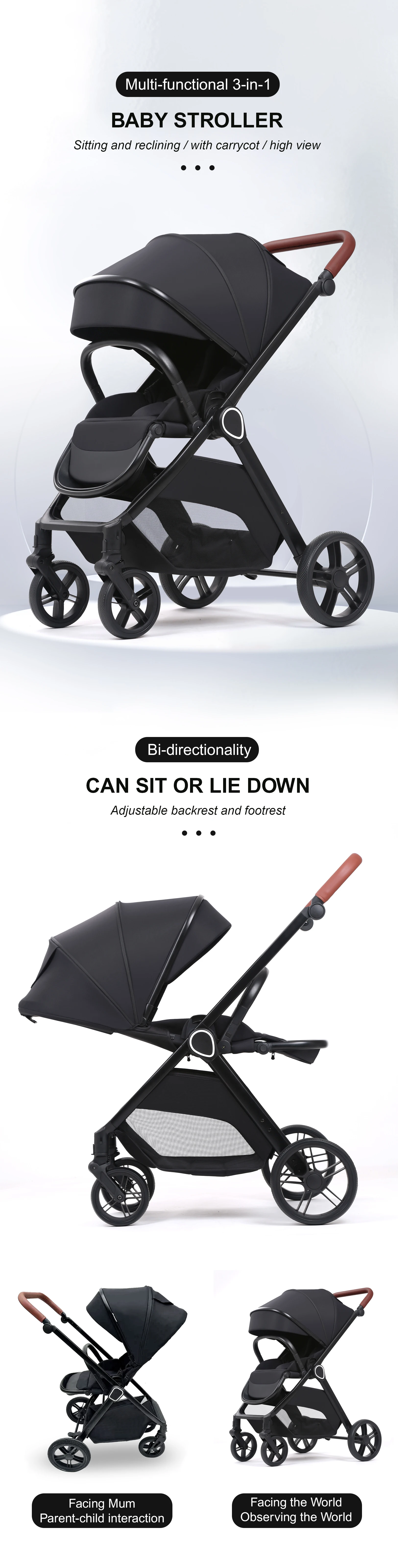 Coches Para Bebes. 3-in-1 Combination Baby Pram Pushchair With Car Baby Seat Travel System Baby Stroller 3 In1 With Car Seat