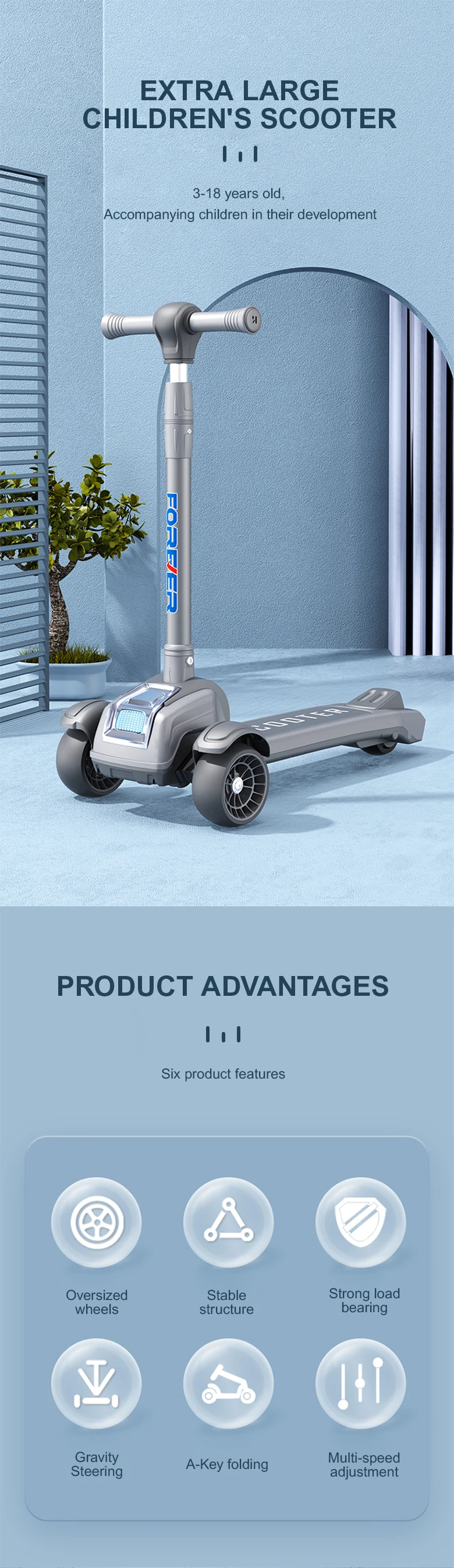 Item name: | Wholesale Foot Scooter Kids 3 Wheels PU LED Extra Wide Children's Kids' Scooter For Boys Girls 3-12 Years Old |