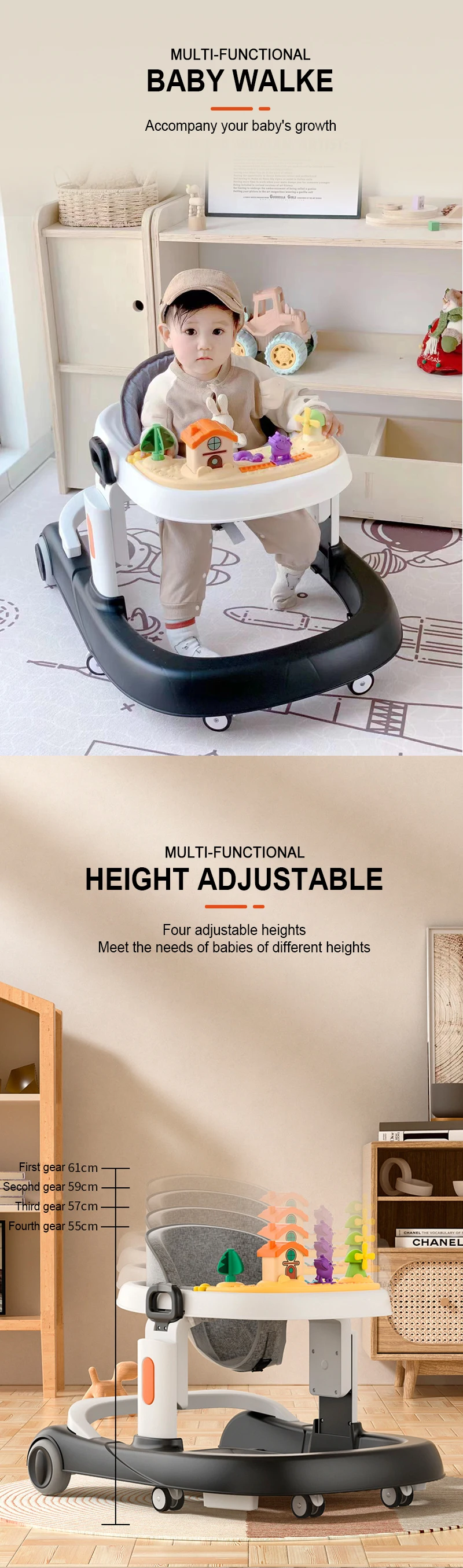 Baby Roller Walker 3 In 1 Foldable Plastic Removable Music Tray Learning Training Activity Baby Walker With heels And Seat