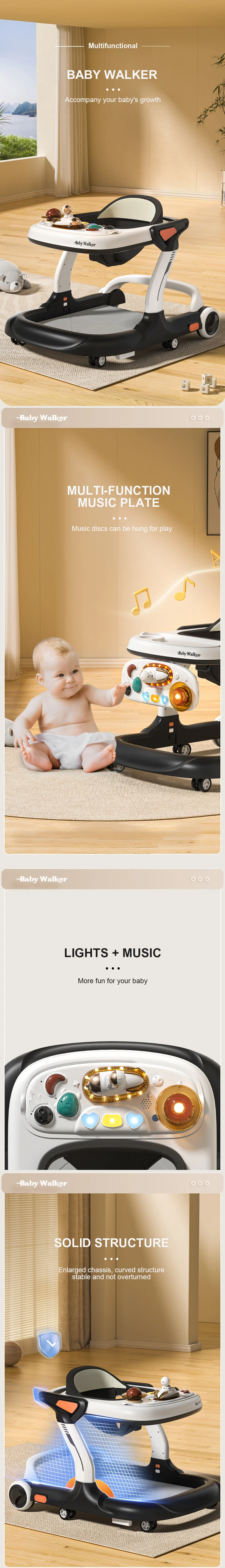 OEM Foldable Walker Baby Multifunctional Adjustable Learning Assistant Baby Safety Children Walker With Music Wheels And Seat
