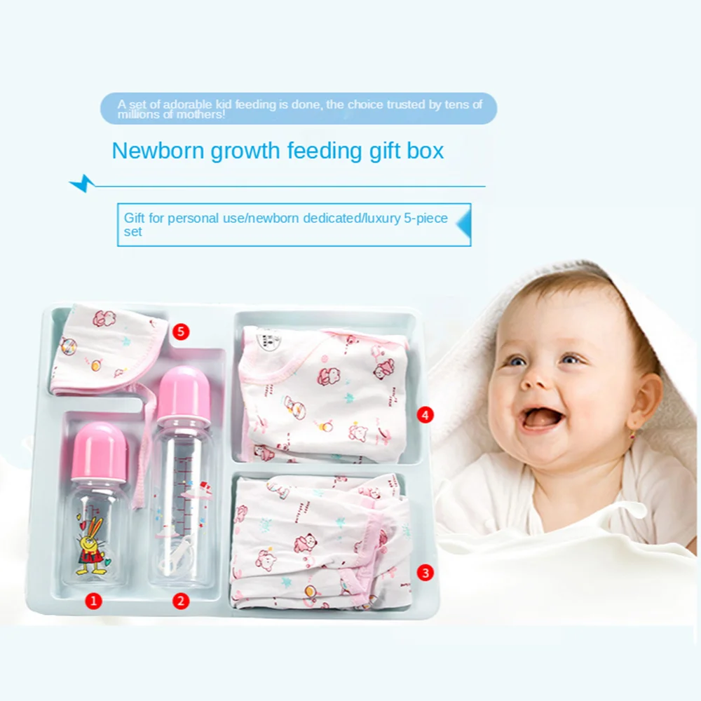 Item name: | Factory Direct Sales High Quality Five Piece PP babies feeding bottle Set Blue Pink Newborn Clothes Set Baby Feeding Bottle |