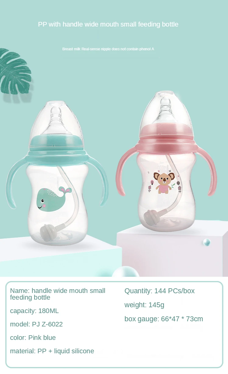 Item name: | Cheap Custom Wide Mouth 180ML Cute Food Grade Silicone Baby Bottles Pp Anti Colic Baby Feeding Bottle With Handle |