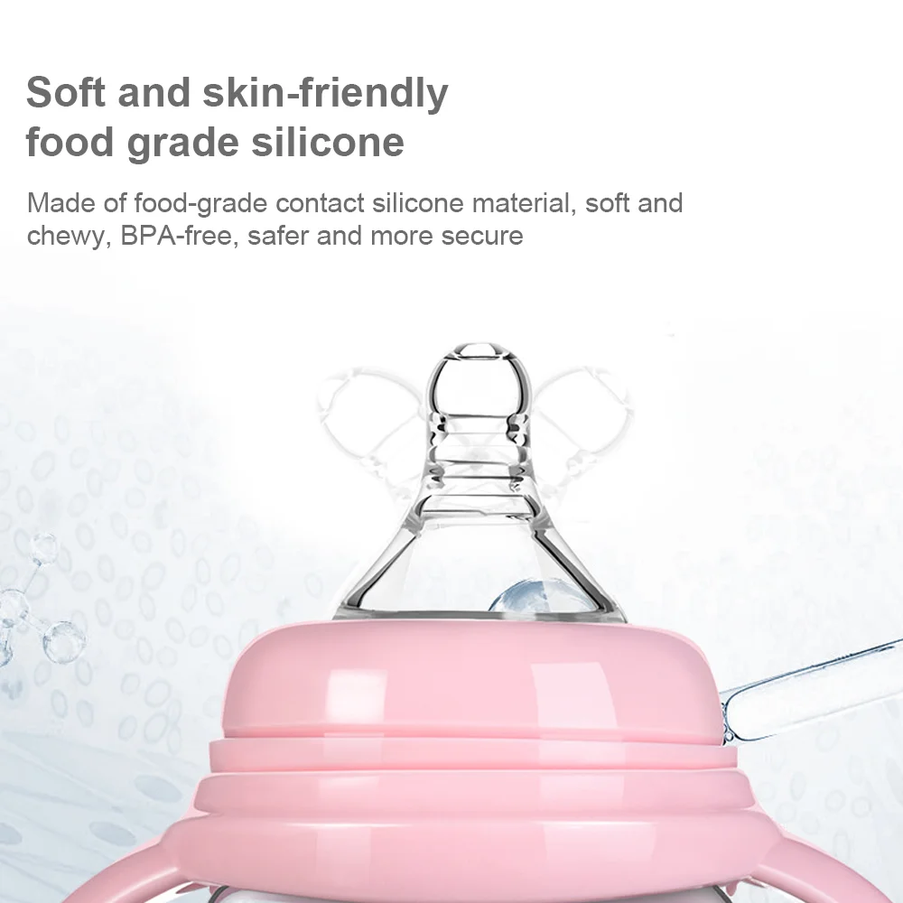 Item name: | Hot Selling Custom Design Professional Leakproof Handle Baby Milk Bottle Silicon BPA Free Baby Feeding Bottle For Newborn Baby |