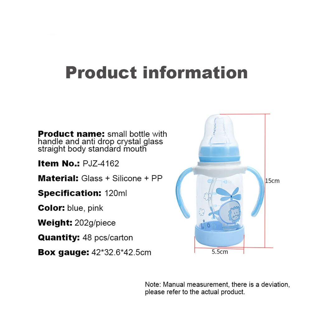 Item name: | Factory Wholesale New Design 120ml Standard Newborn Handle Baby Glass Feeding Bottle Baby Milk Bottle With Silicon Nipple |