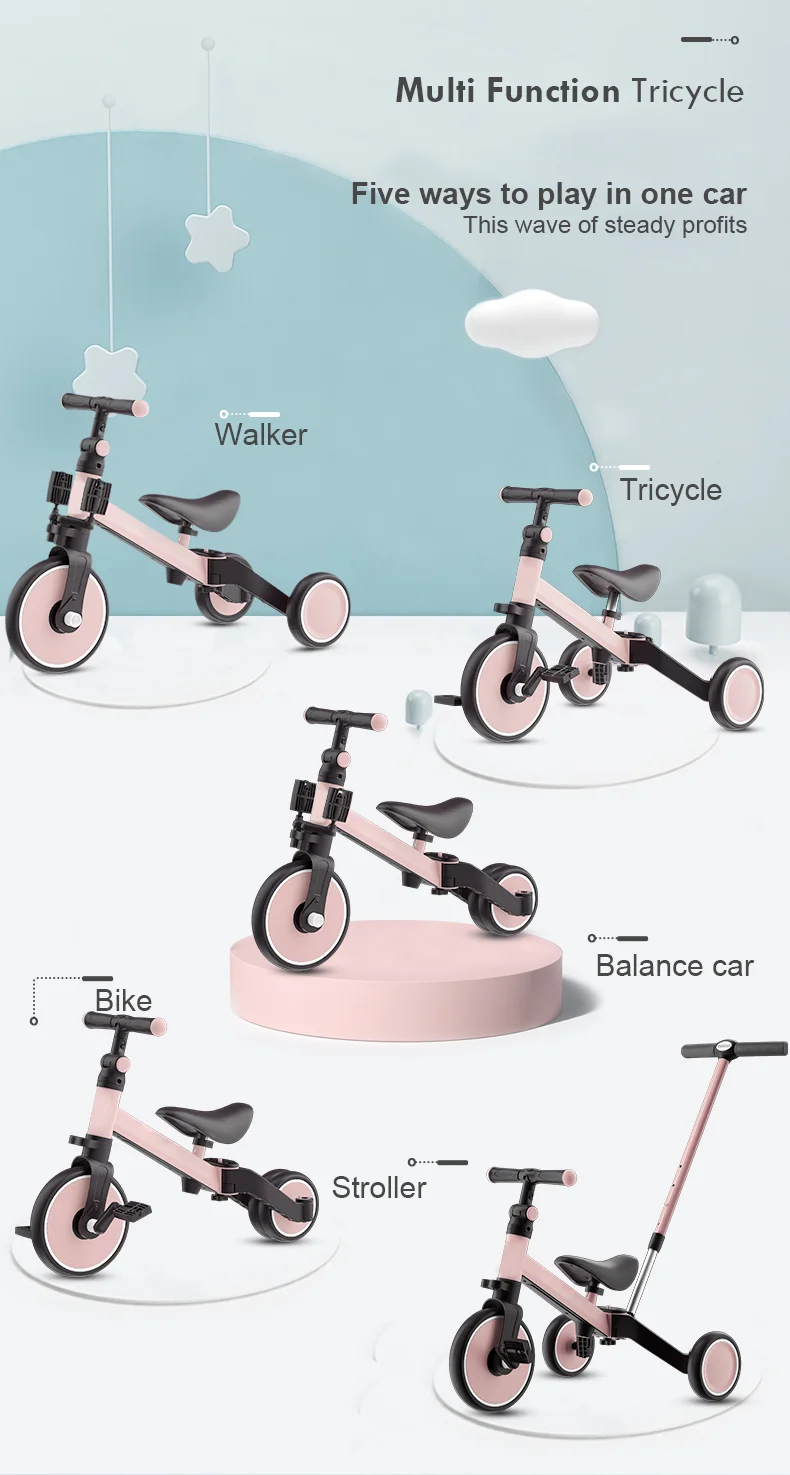 Item name: | Manufacturer New Style Aluminum Frame 5 In 1 Tricycle Ride On Car Kids Balance Bike With Basket Trike Toddler Tricycle |