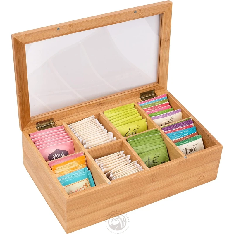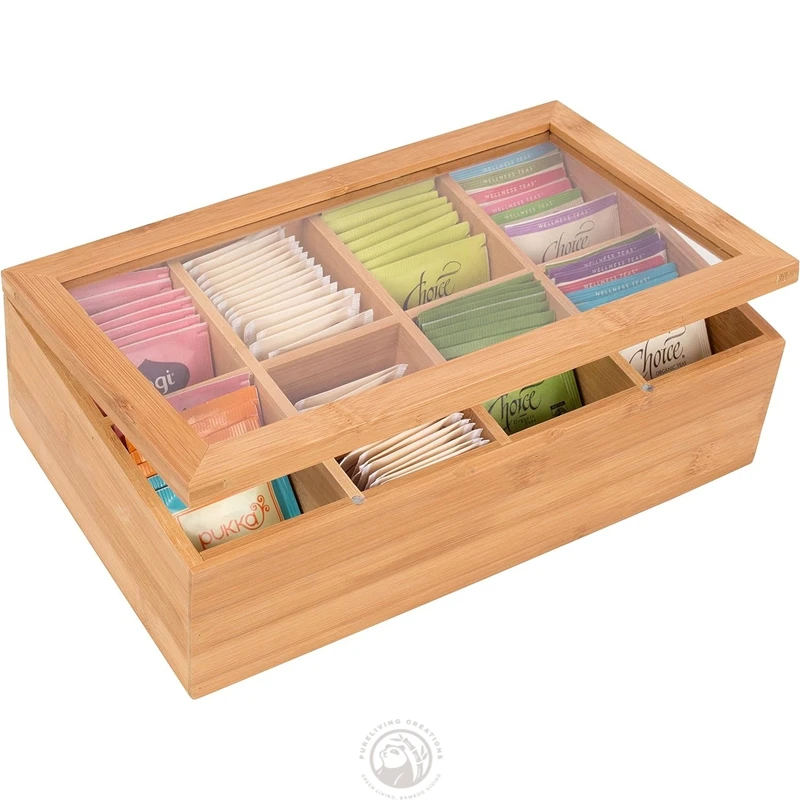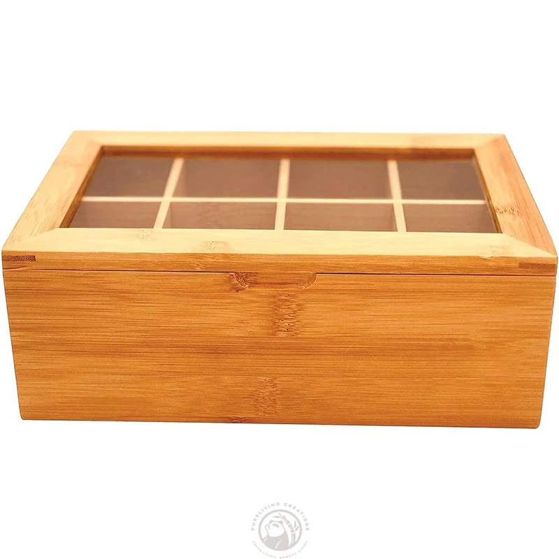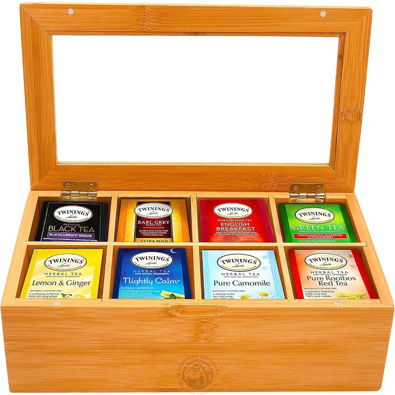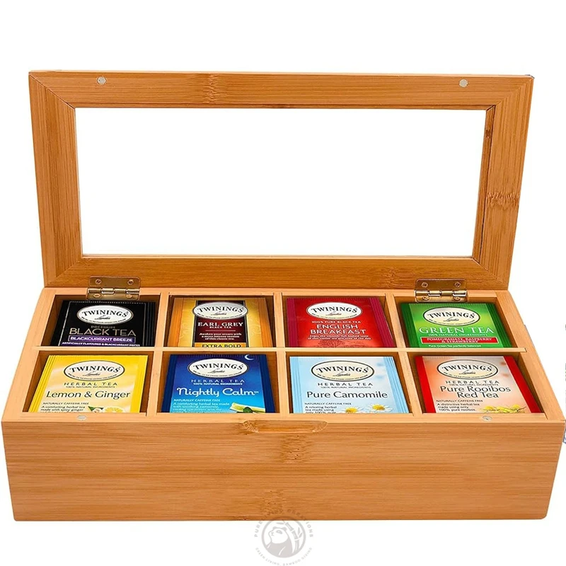 Acrylic Window 8 Compartments Magnetic Lid Made of Bamboo Tea Bag Organizer Wooden Tea Box