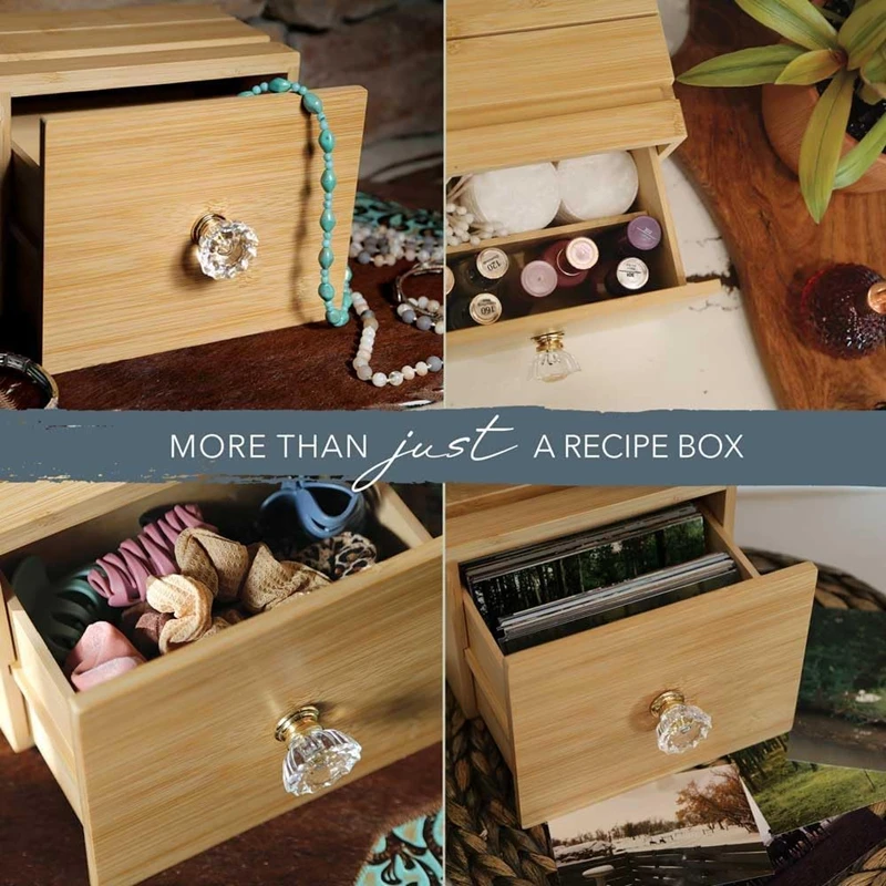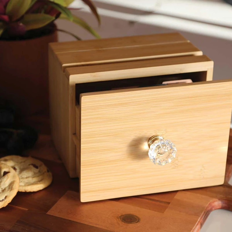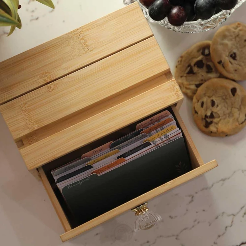 4x6 100% Bamboo Wooden Recipe Box with Cards and Dividers Drawer Recipe boxes Bamboo Wooden Recipe Box