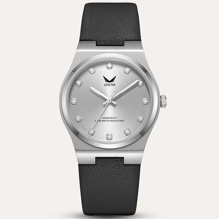 Fashion Leather Strap Silvery Dial With Crystal Scale Luxury Quartz Movement Relgio Minimalista Women Simple Watch Lady Watches