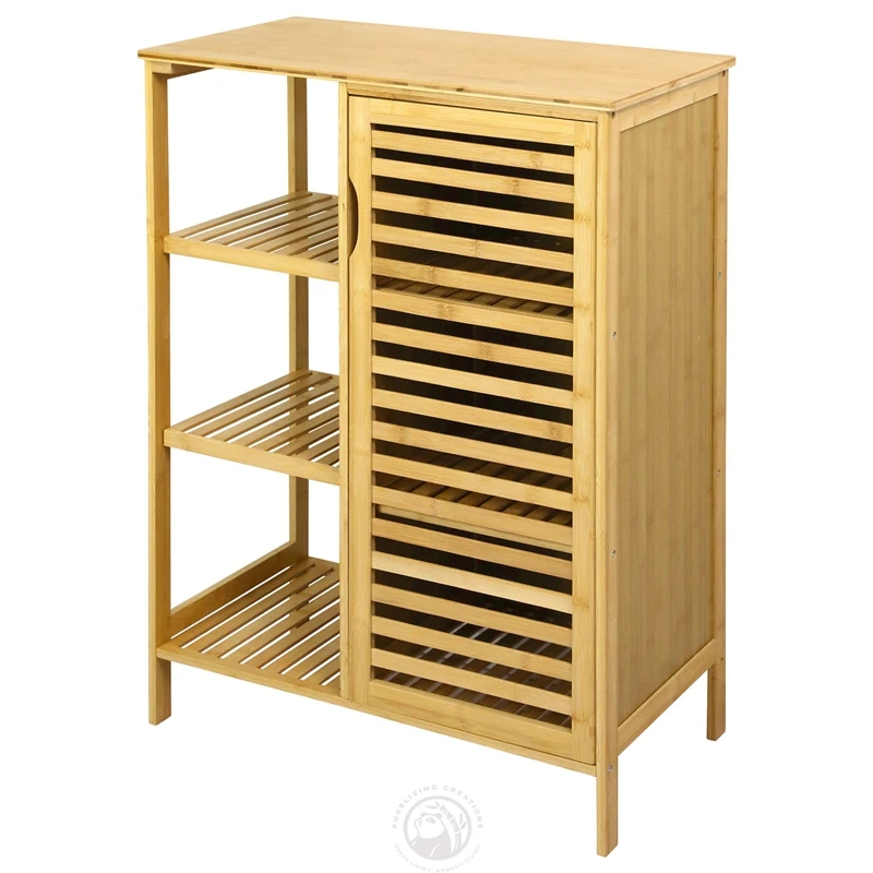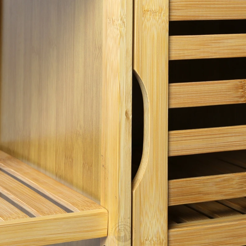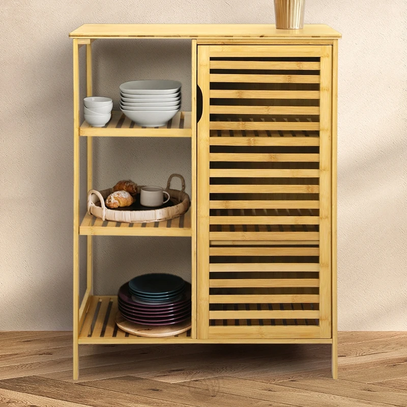 Freestanding Floor Living Room Bathroom Cabinet Bamboo Storage Cabinet with Doors and 3 Side Shelves