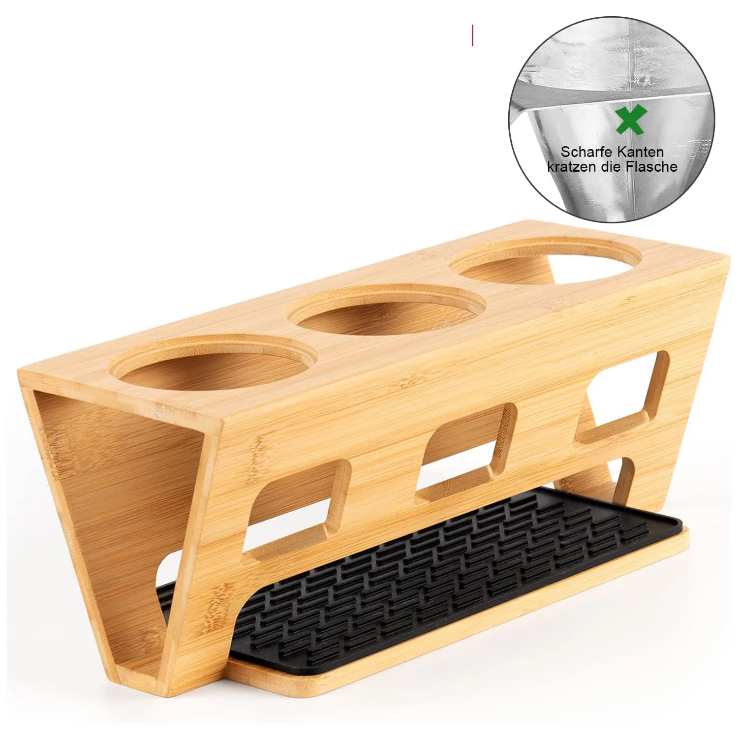 Custom Bamboo Water Bottle Holder, Bamboo Drip Holder, Glass Bottle Holder with Drip Mat and Lid Holder