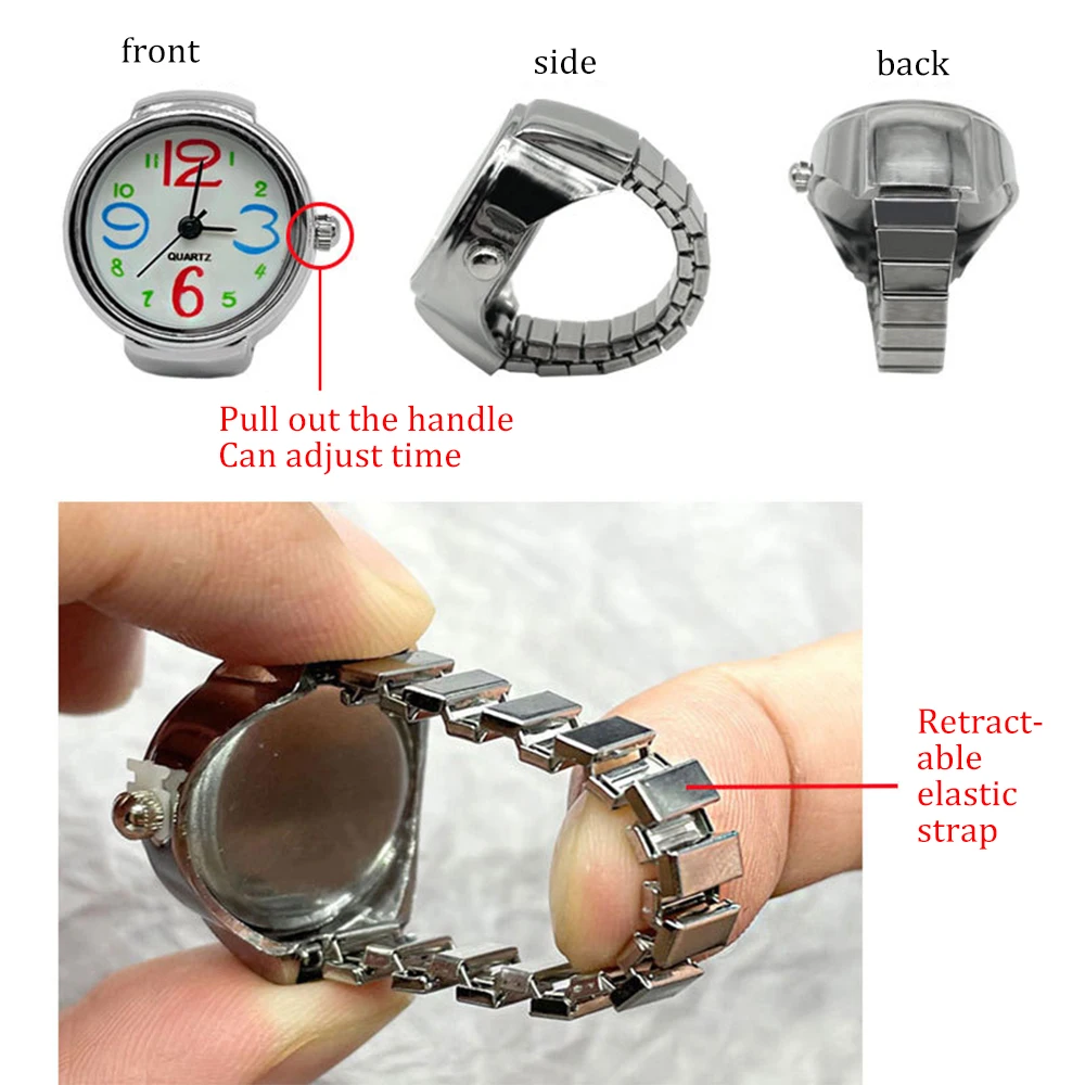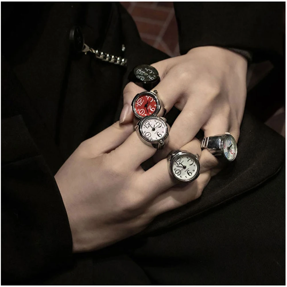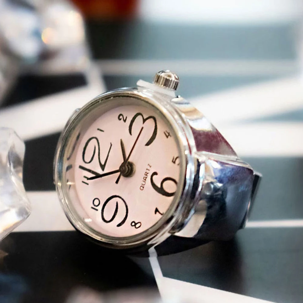 Hot Sale Fashion Alloy Mini Cute Women Finger Watch Ring Luxury Round Shape Cheap Price Silver Ring Watches
