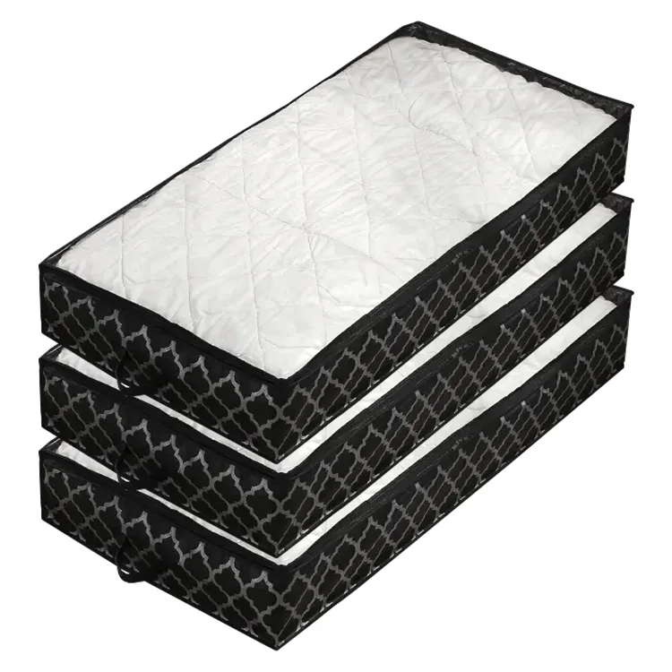 Black with Pattern Underbed Storage Containers Under Bed Storage Box Storage Bag With for Blankets Clothes Sweater shoes