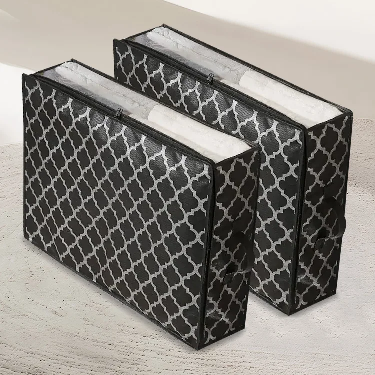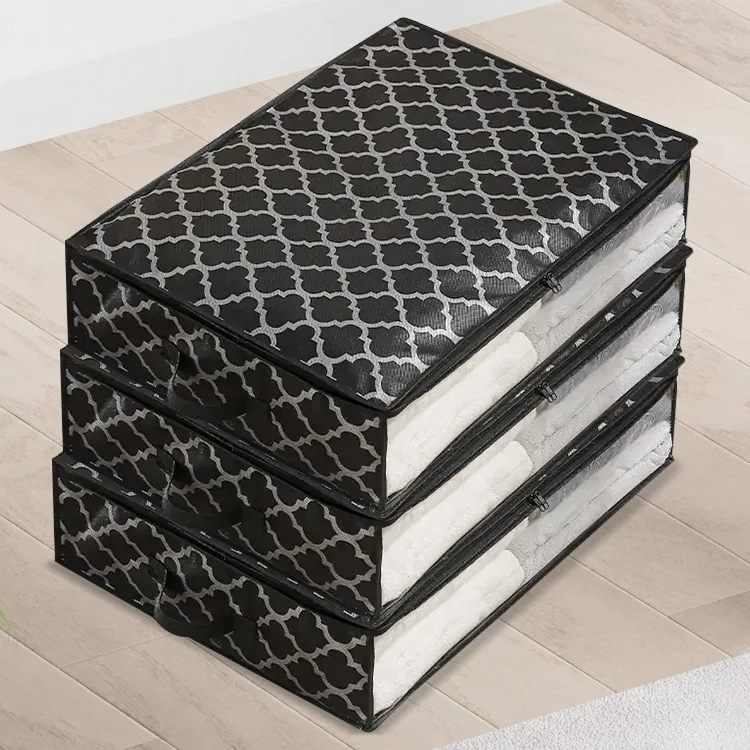Hot Sale High Quality Nonwoven Bedside Underbed Storage Bags Black Quilt Box Zipper Clothes Storage Bag Organizer For Clothes