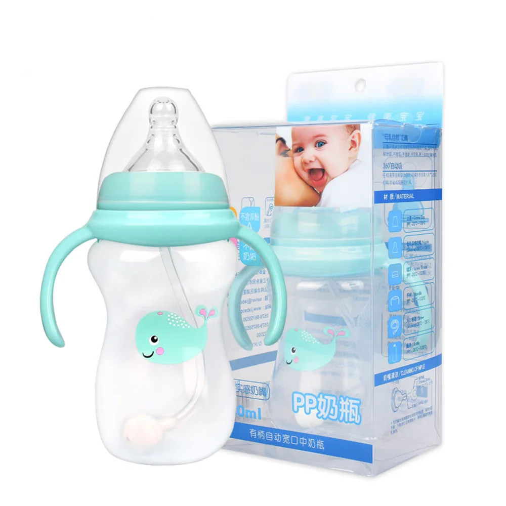 Item name: | Factory Supply Cheap Custom 240ML Wide Mouth Baby Silicone Nipple Milk Bottle Plastic Baby Feeding Bottle With Handle |