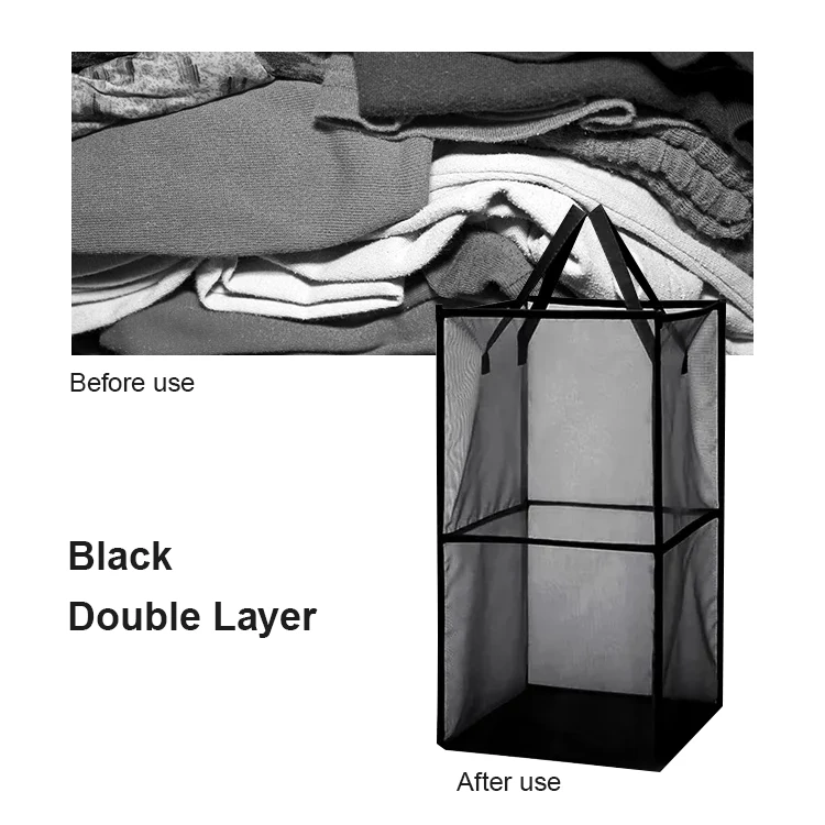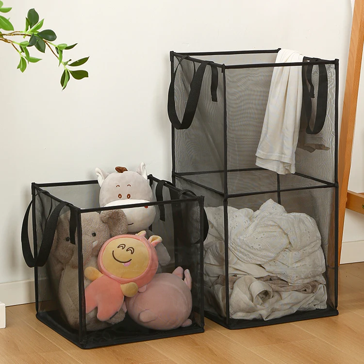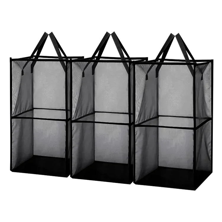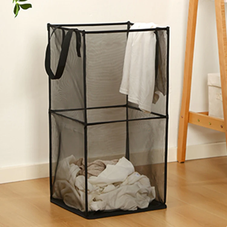 High Quality Custom Wholesale Storage Foldable Laundry Basket Bag Mesh Two Layer Storage Laundry Basket