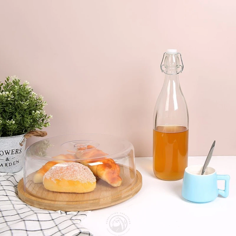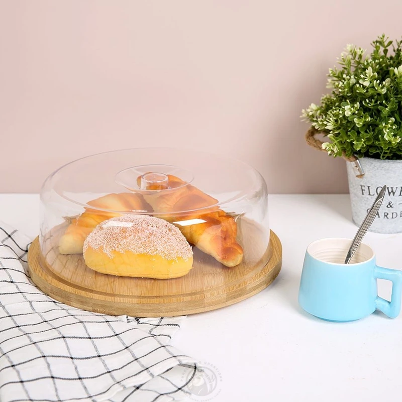 Bamboo Cake Stand with Glass Dome Cover cake stand with dome wood cake stand