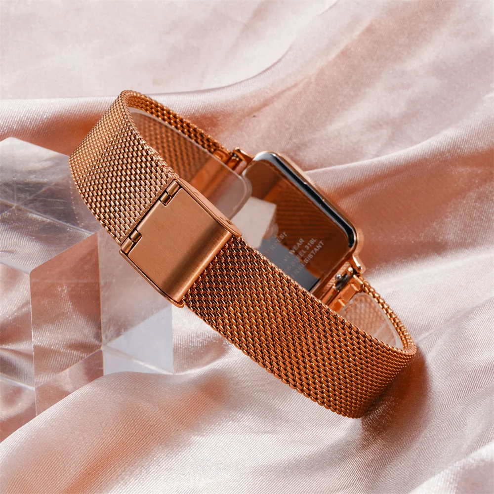 Stylish Quartz 3atm Waterproof Square Matte Red Dial Gold Case Luxury Female Modern Womens Watch Vintage High Quality Watch