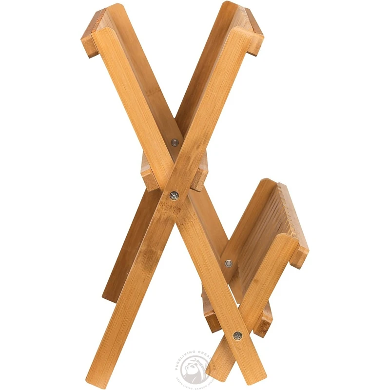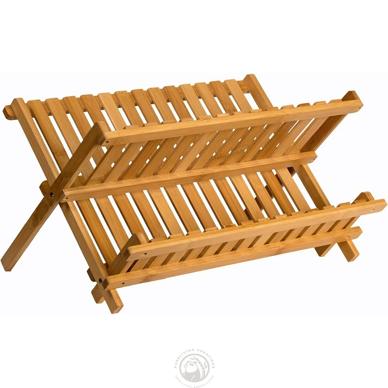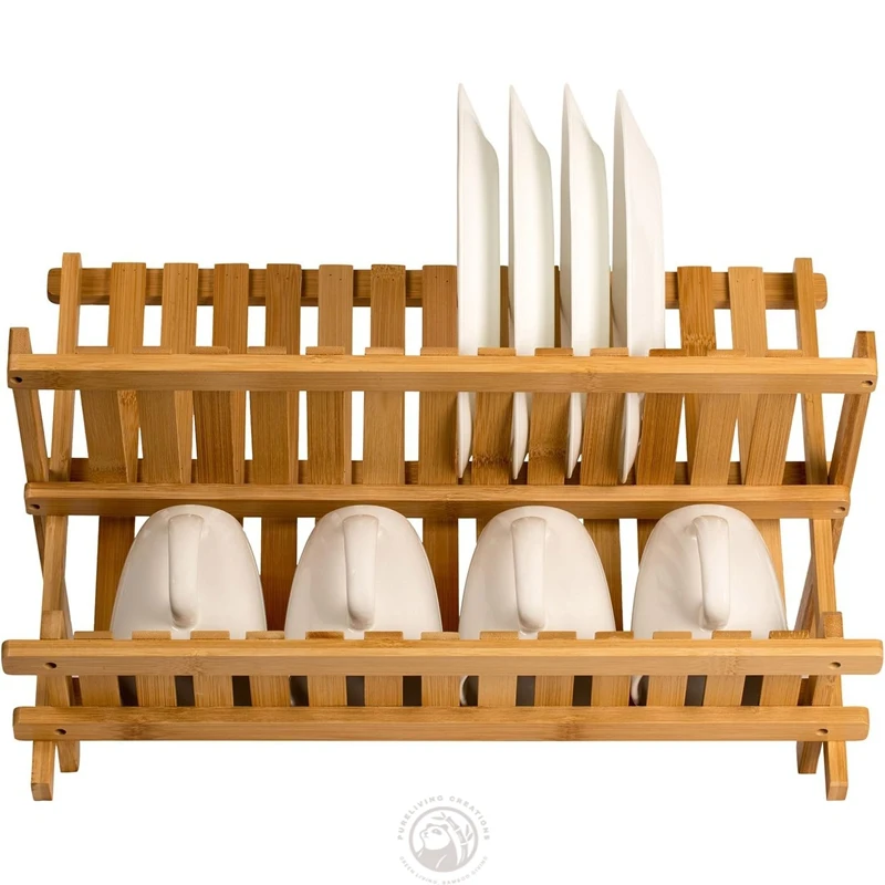 Kitchen Countertop 2-Tier Collapsible Foldable Bamboo Dish Drying Rack Dish Drainer Plate Rack
