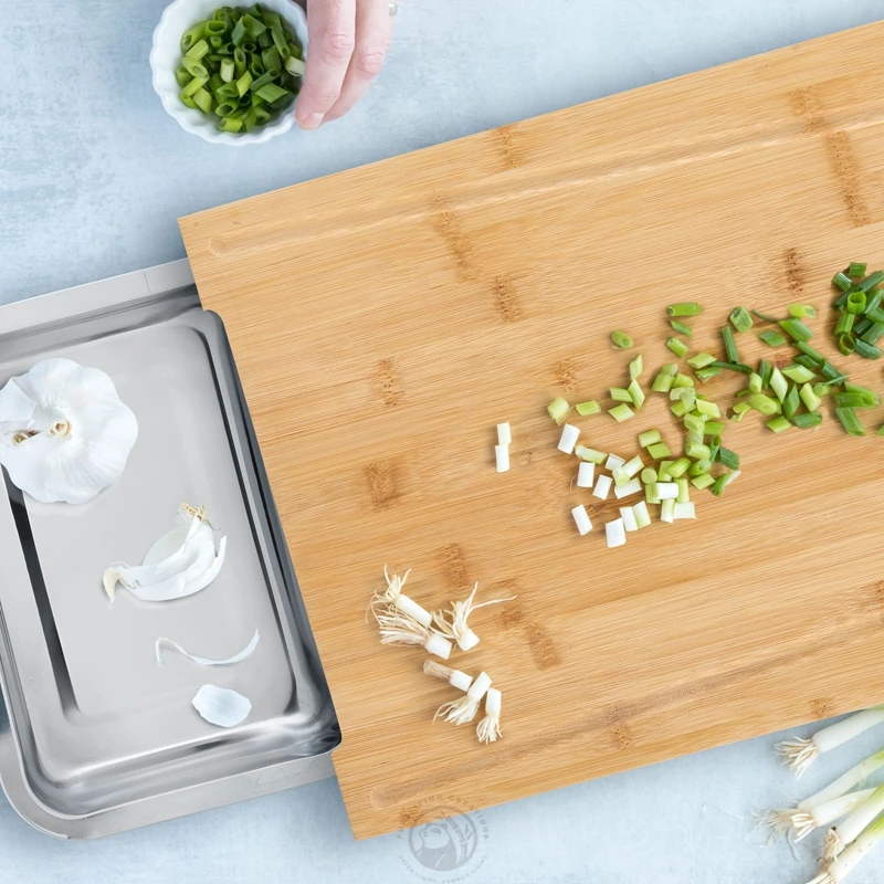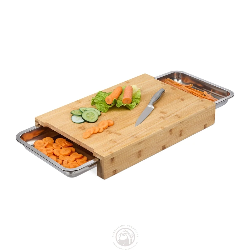 100% Natural Bamboo Cutting Board with Hidden Tray wooden cutting boards for kitchen cutting board with containers