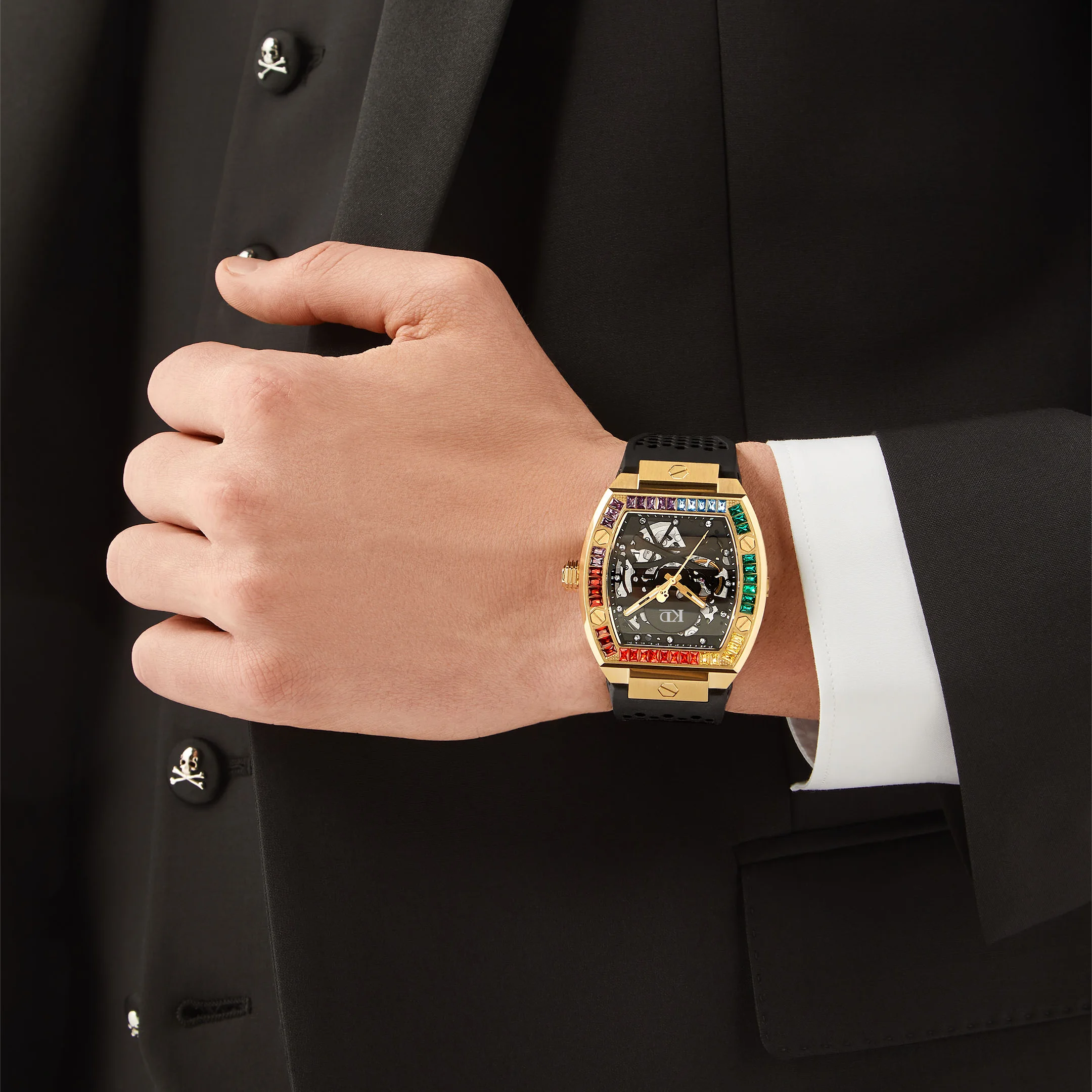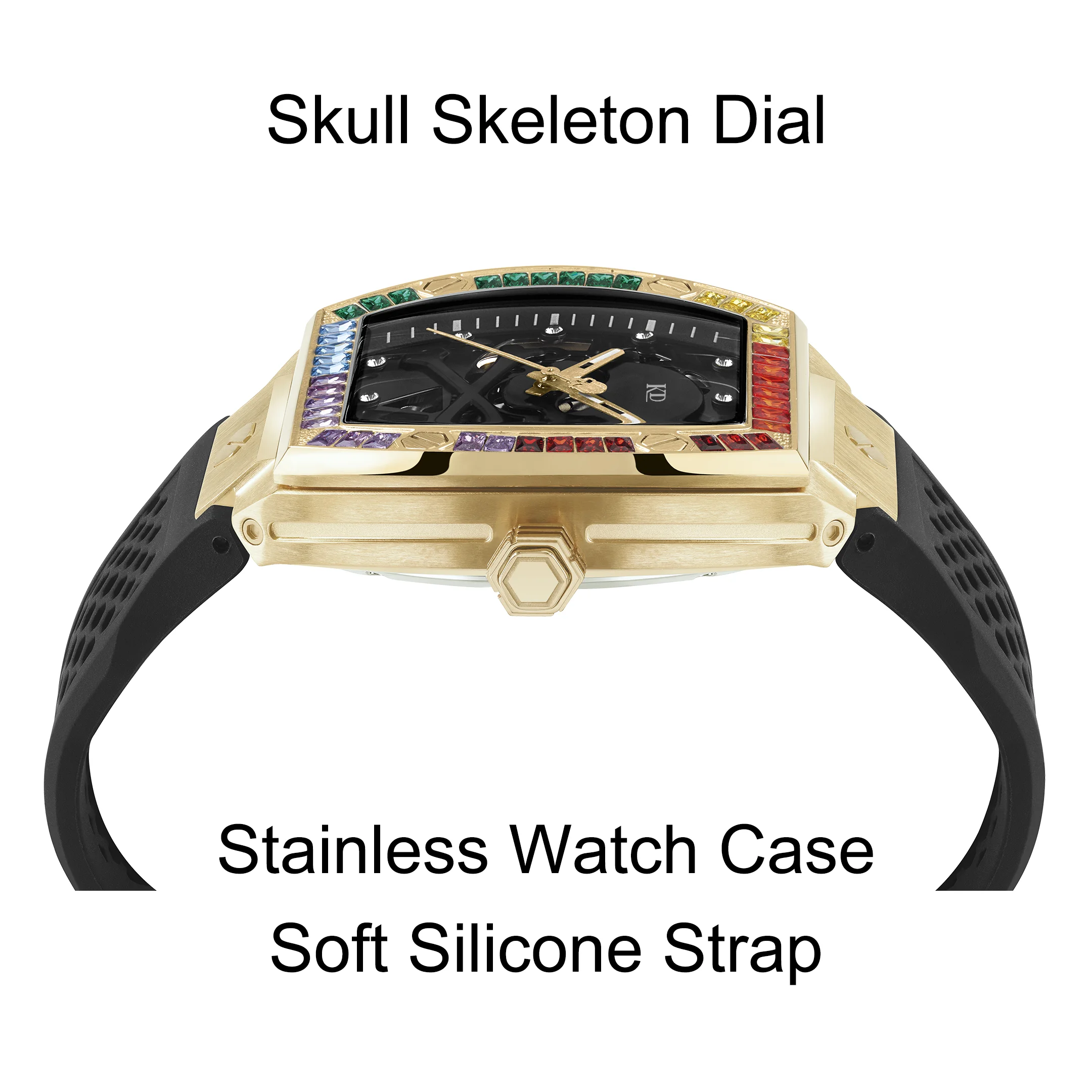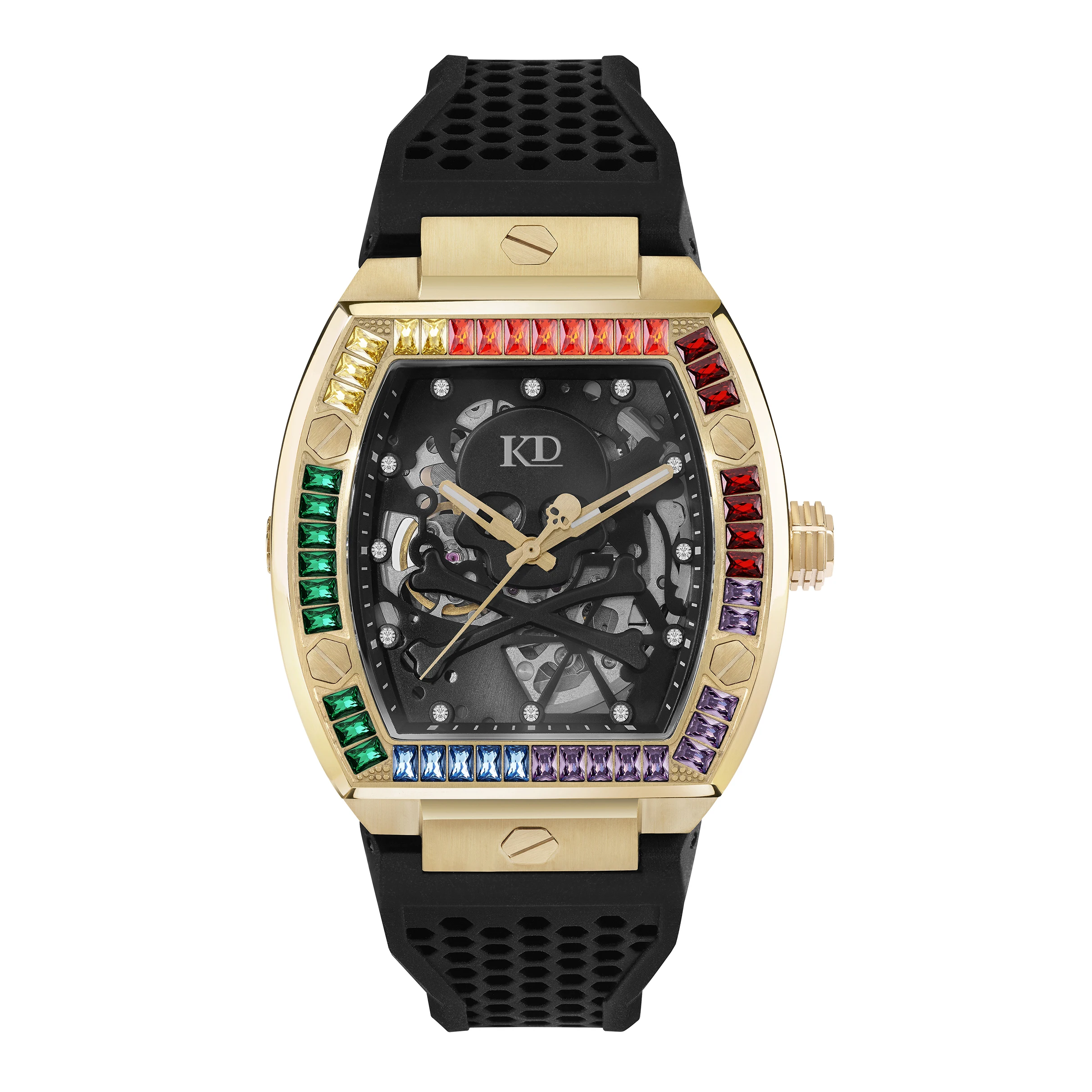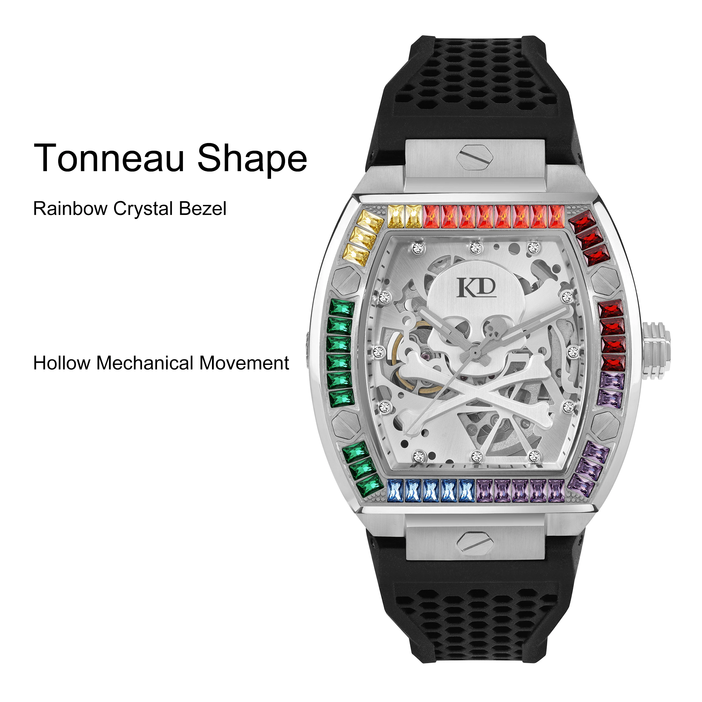 Product Name | Rainbow Stones Bezel Hollow Skeleton Mechanical Watch |